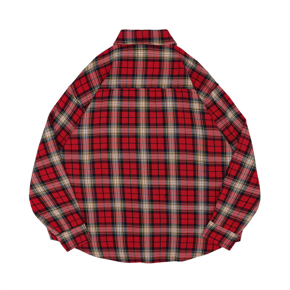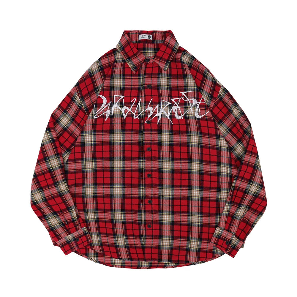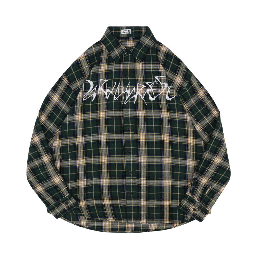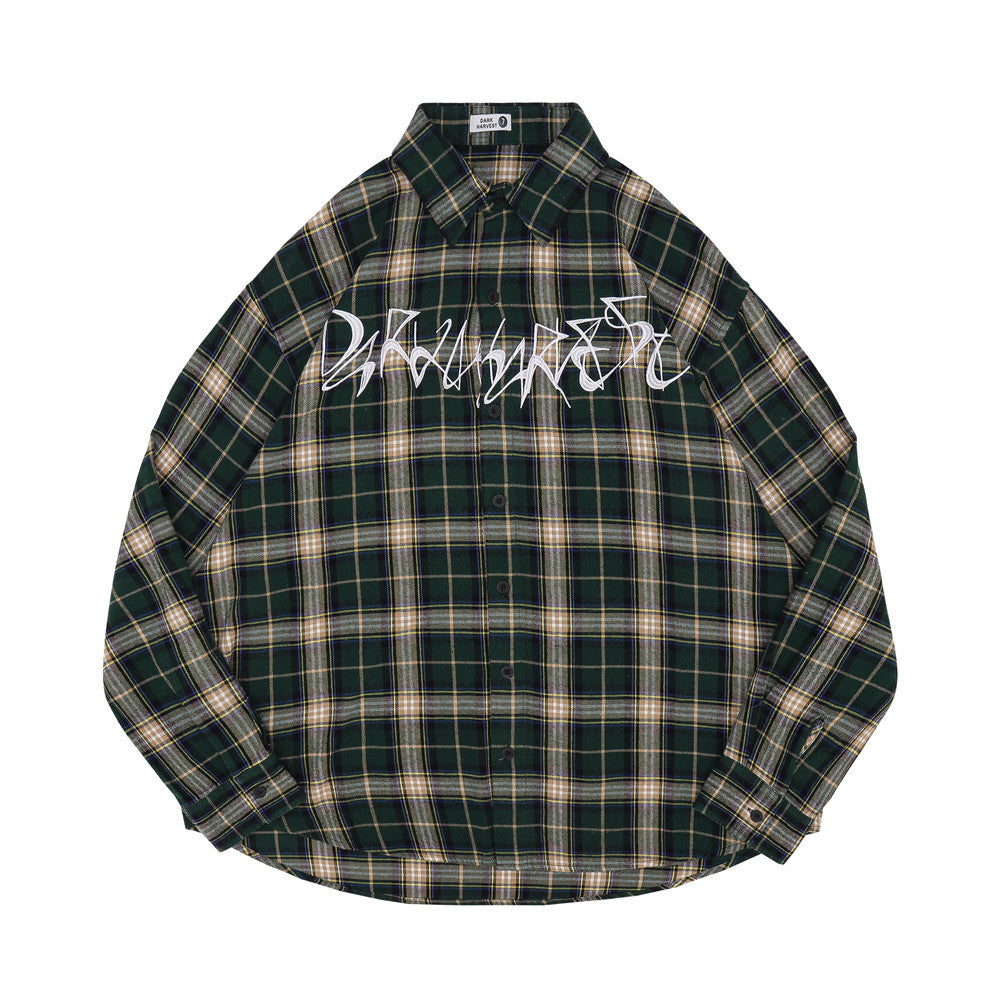 Men Long Sleeved T Shirt Spring and Autumn Lattice Shirt Men Letter Embroidery Loose Shirt Coat