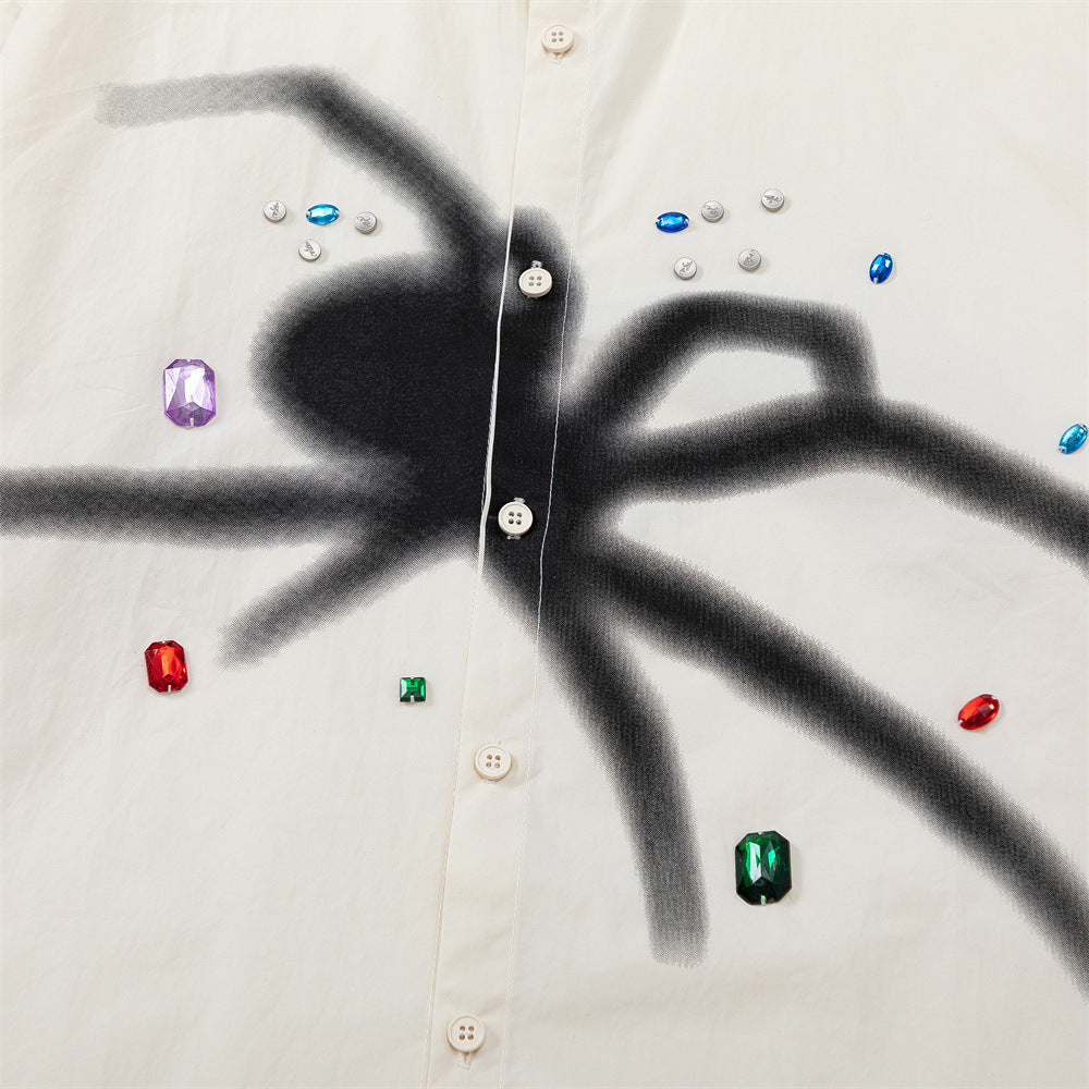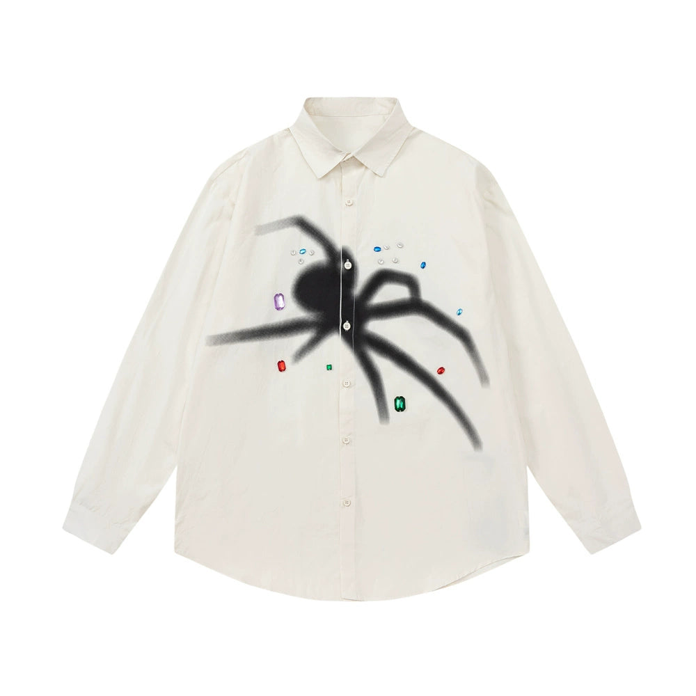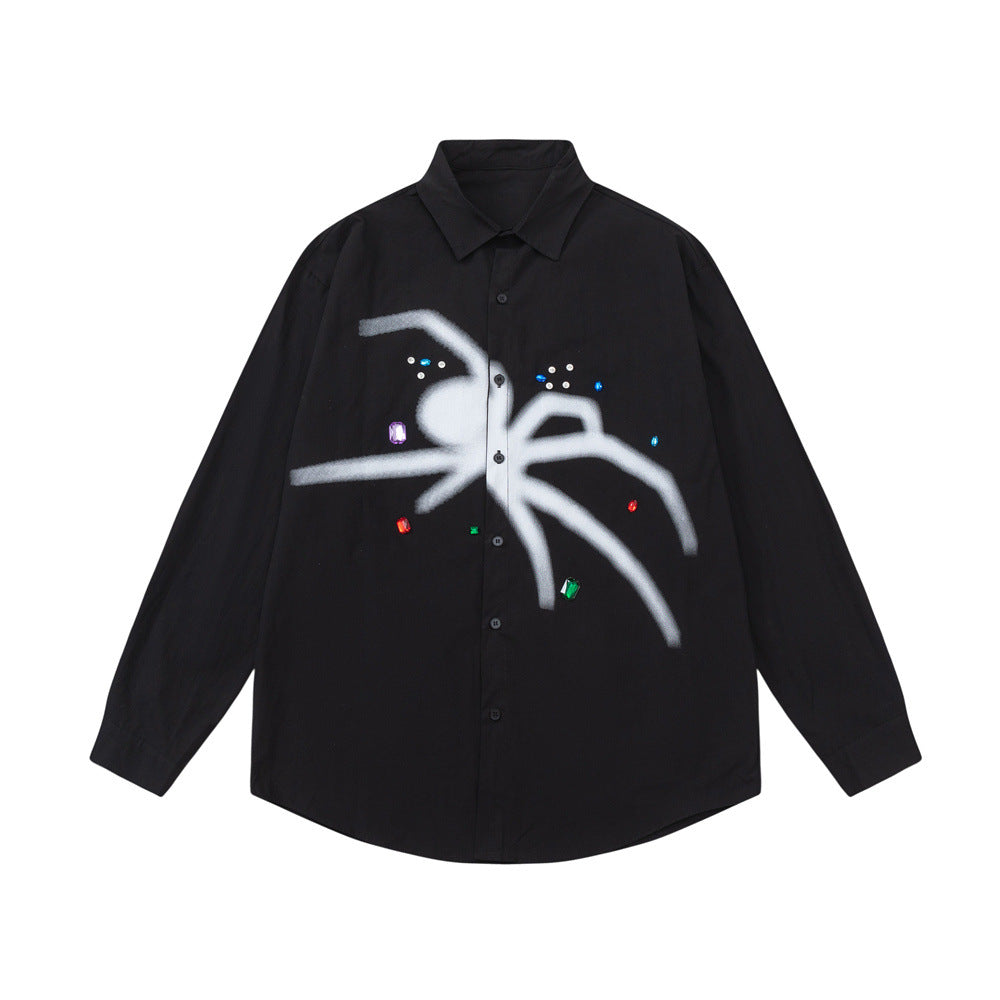 Men Long Sleeved T Shirt Dark Style Spider Print Long Sleeve Shirt Men's High Street Hot Drilling Spring and Autumn Coat