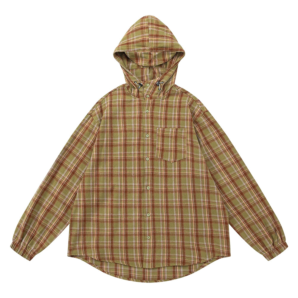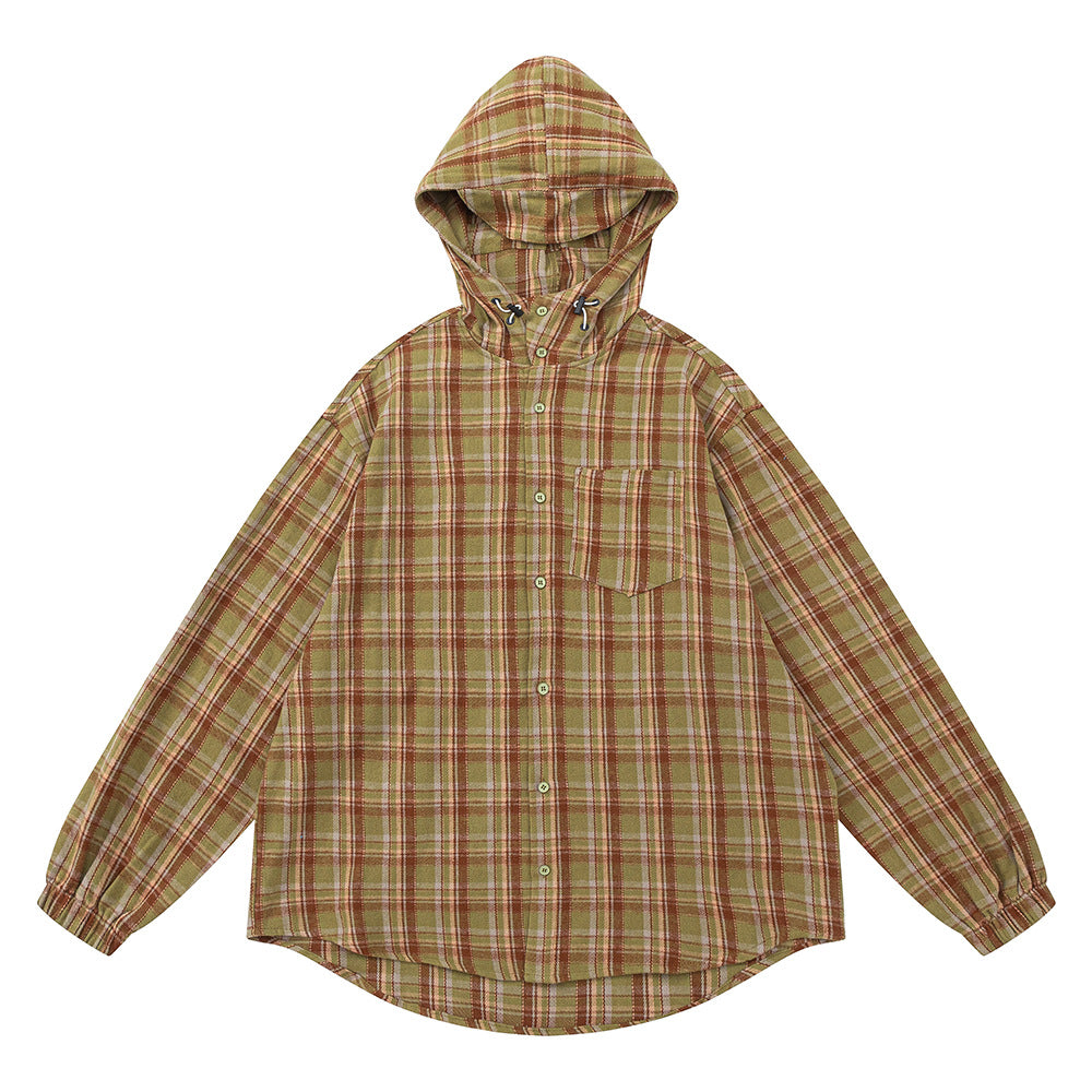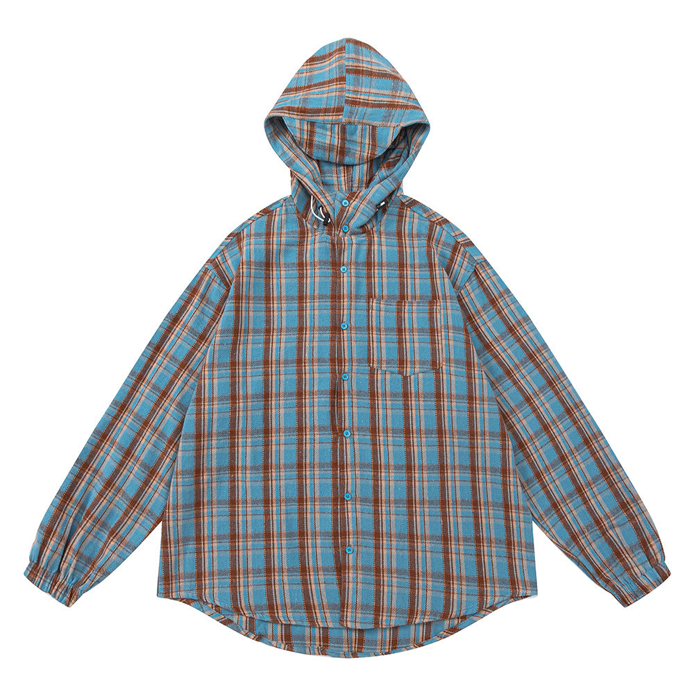 Men Long Sleeved T Shirt Hooded Plaid Shirt Men Spring Autumn Outdoor Sports and Casual Loose Long Sleeve