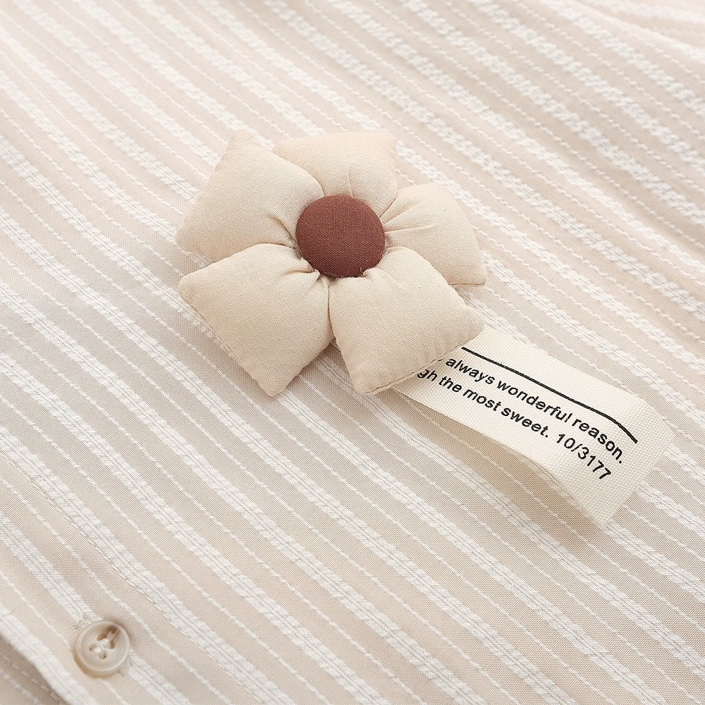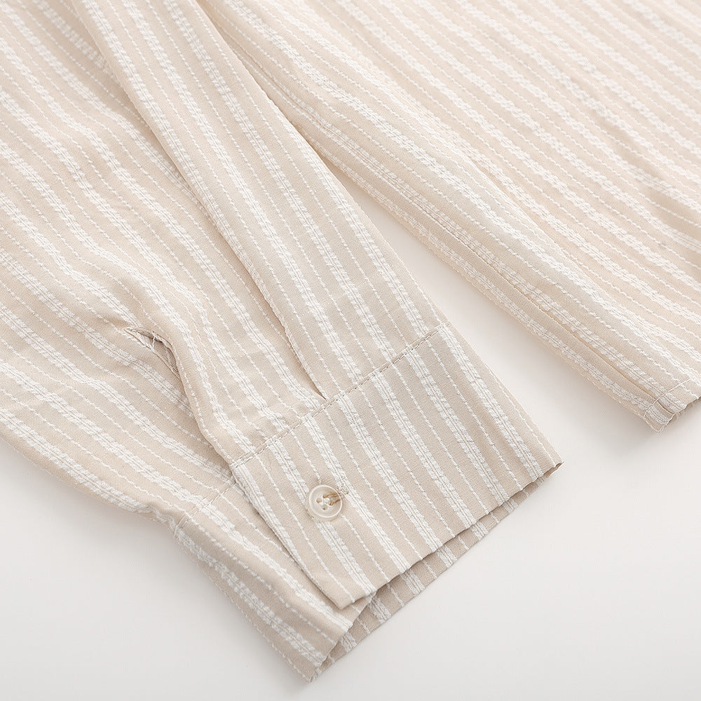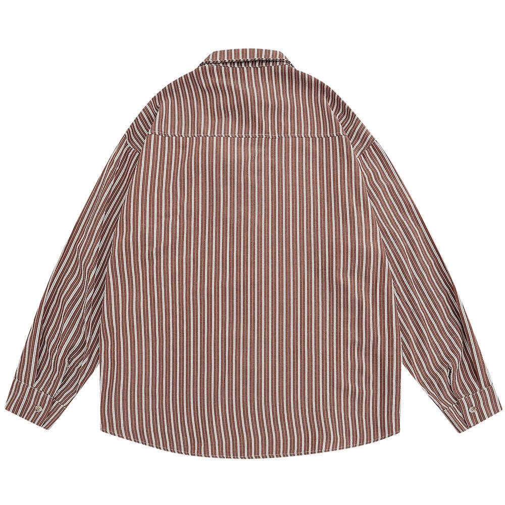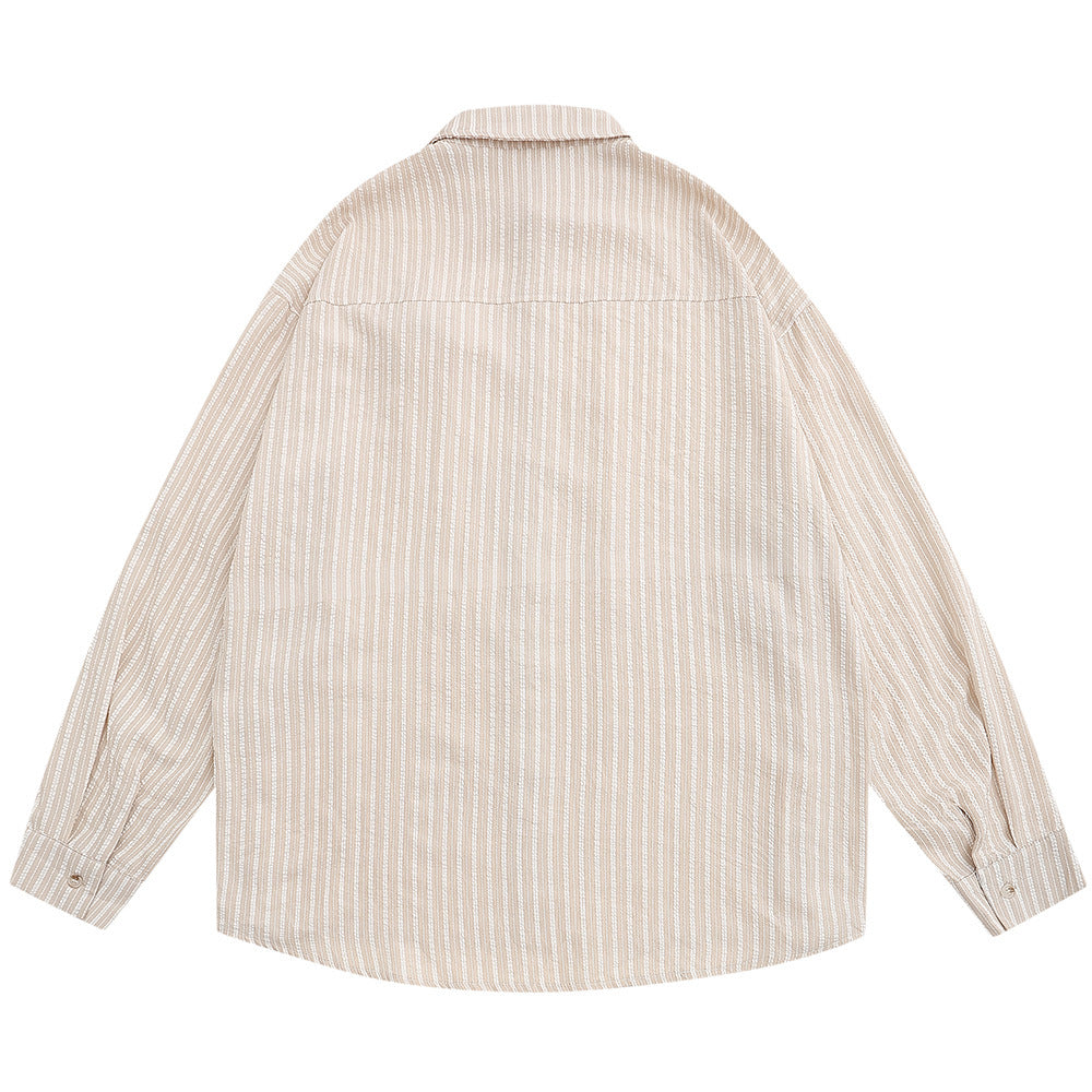 Men Long Sleeved T Shirt Flower Vertical Striped Long Sleeve Shirt Men's Spring and Autumn Loose Shirt Casual