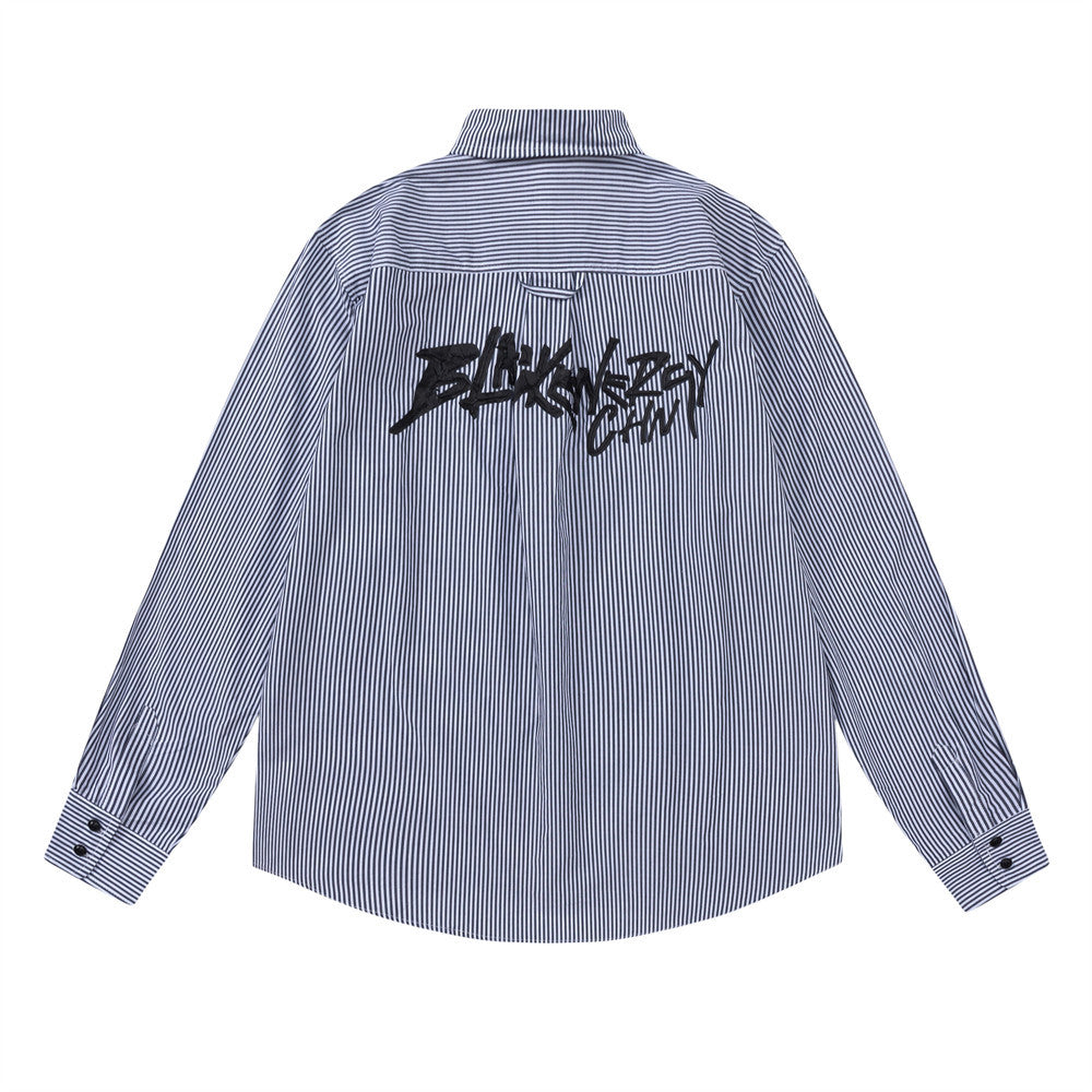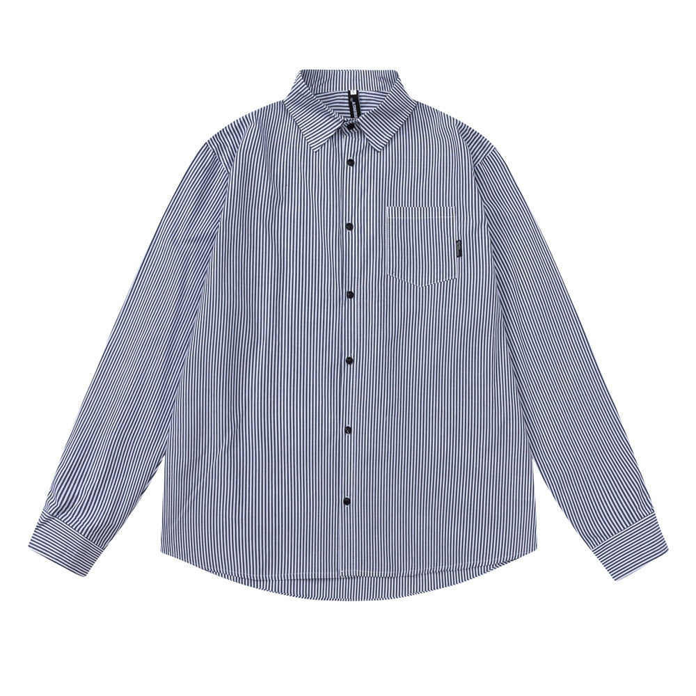 Men Long Sleeved T Shirt Spring and Autumn Vertical Striped Long Sleeve Shirt Men's Casual Loose Shirt Outer Wear