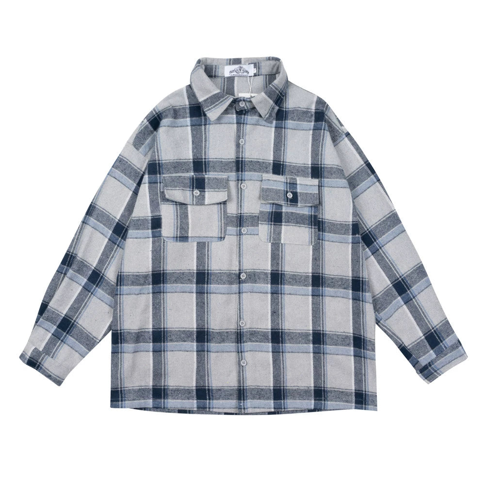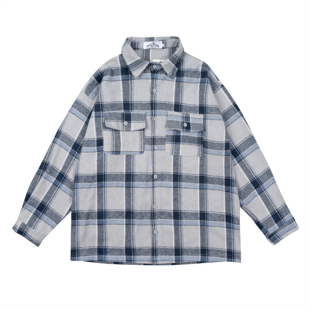 Men Long Sleeved T Shirt Plaid Shirt Men Long Sleeve Loose-Fitting Shirt Coat Casual Polo Collar