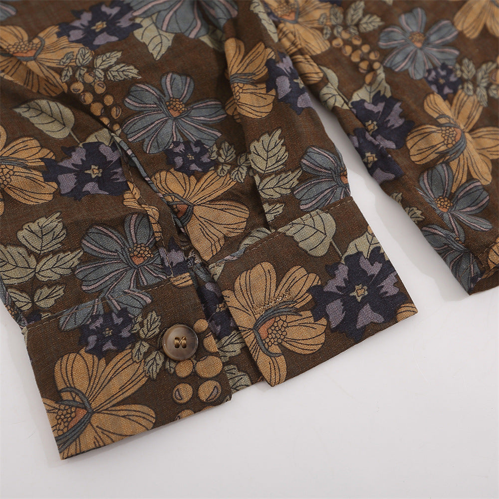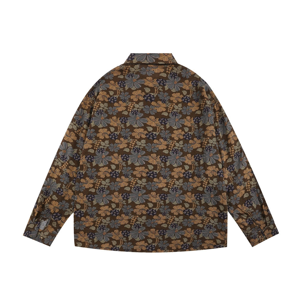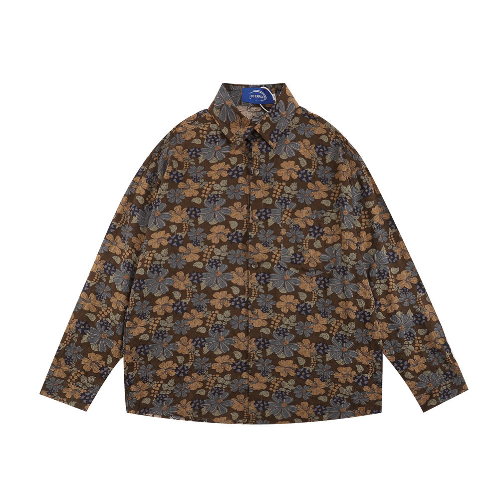 Men Long Sleeved T Shirt Vintage Floral Shirt Men's Ins Casual Long Sleeve Printed Loose Cardigan