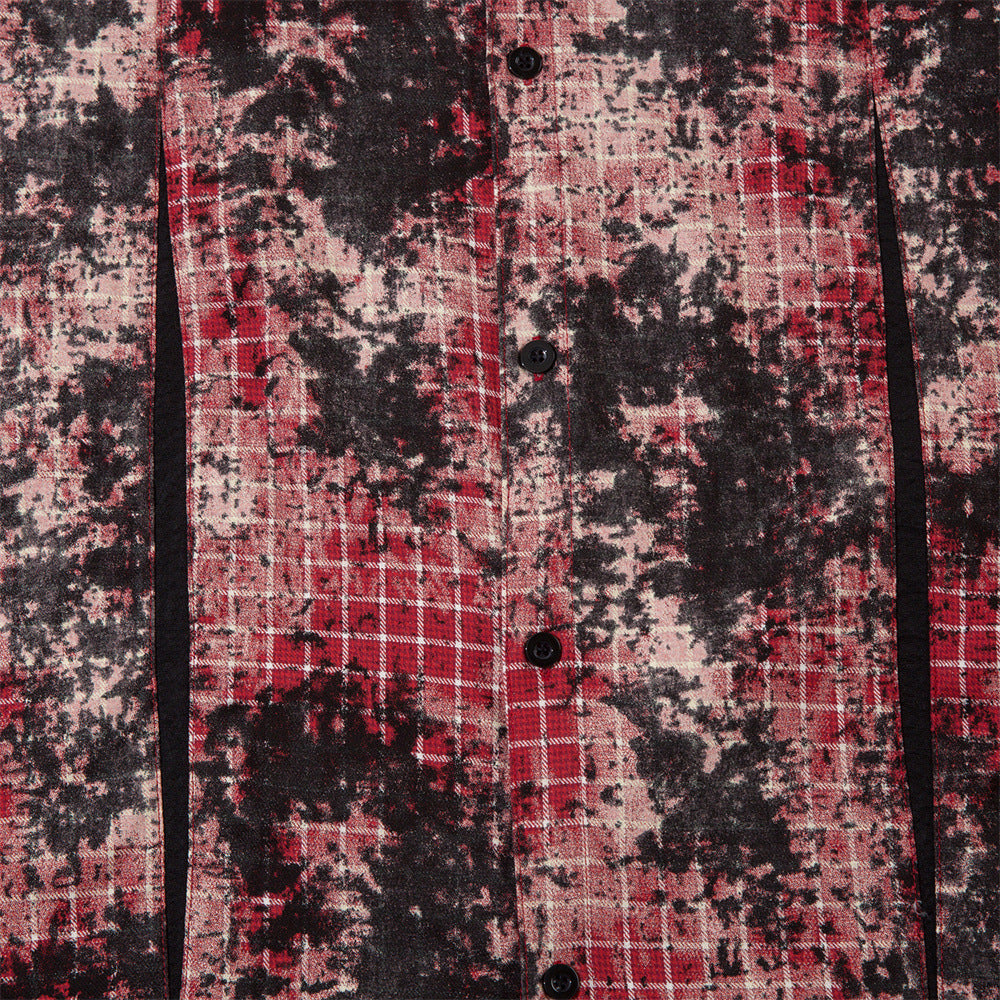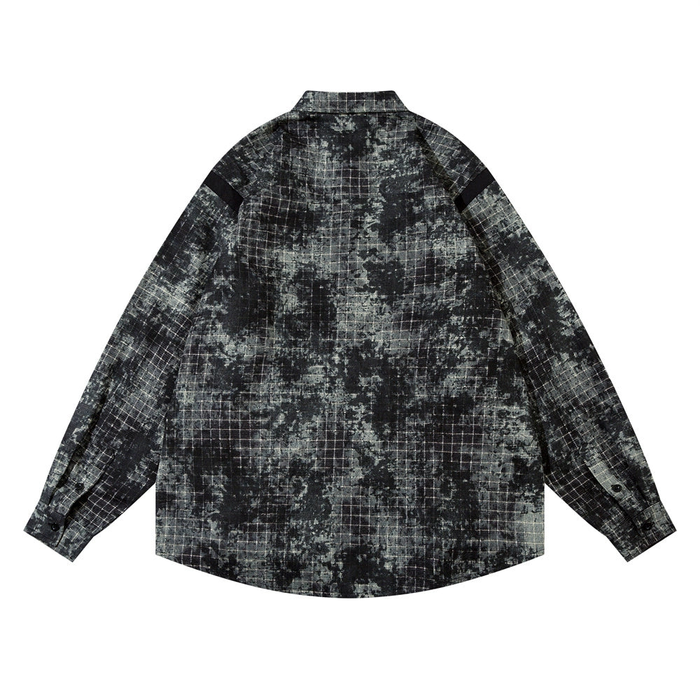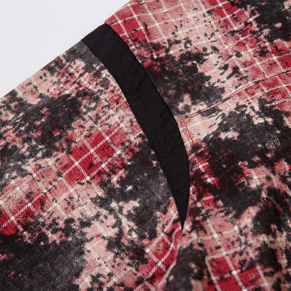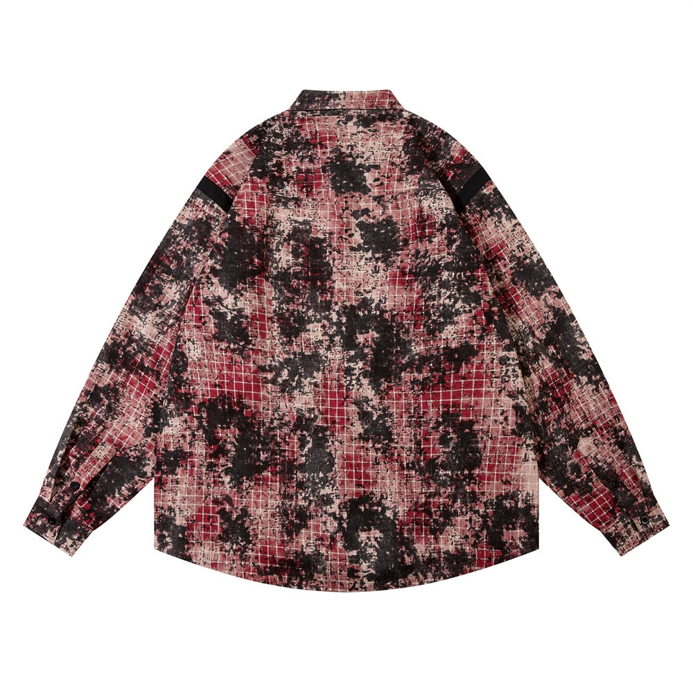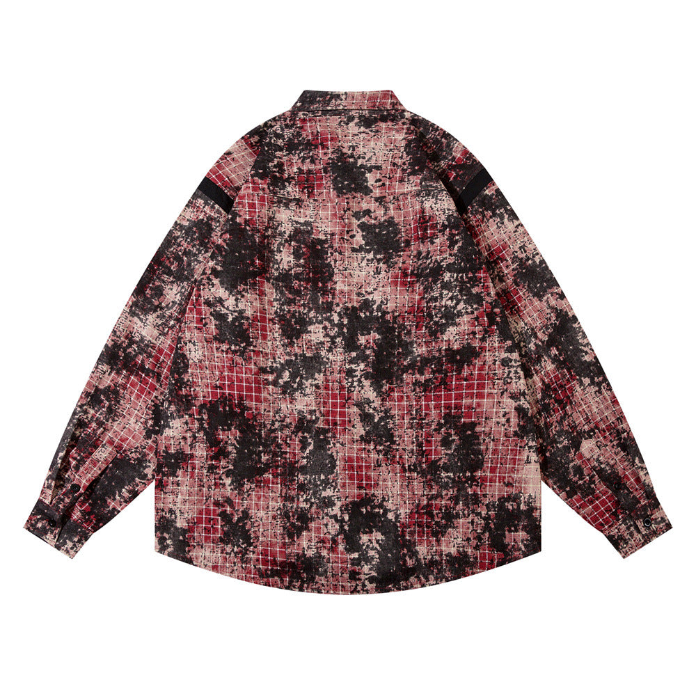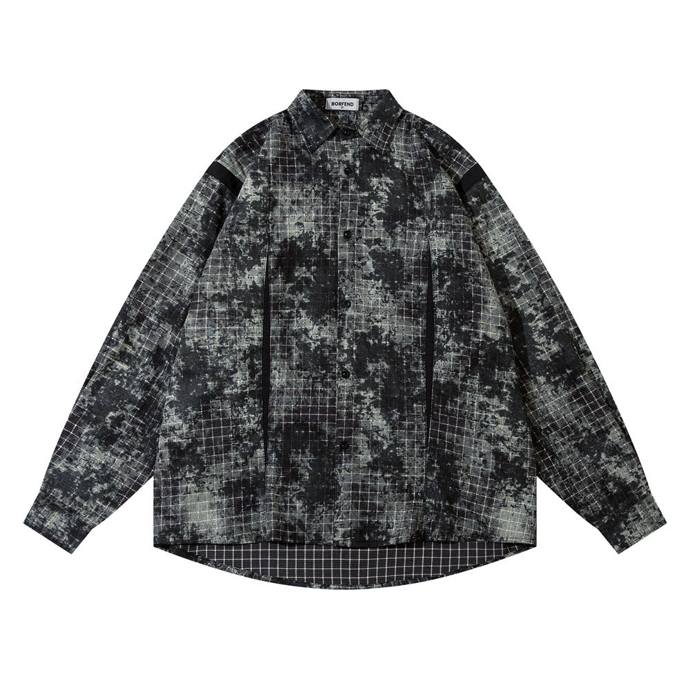 Men Long Sleeved T Shirt Distressed Plaid Shirt Men's High Street Stitching Loose Lapels Long Sleeve Shirt Coat Autumn and Winter