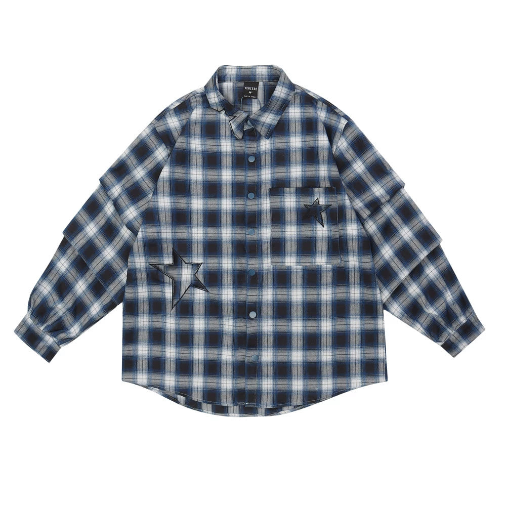 Men Long Sleeved T Shirt Long Sleeve Shirt Loose Five-Pointed Star Embroidered Lapel Casual Shirt