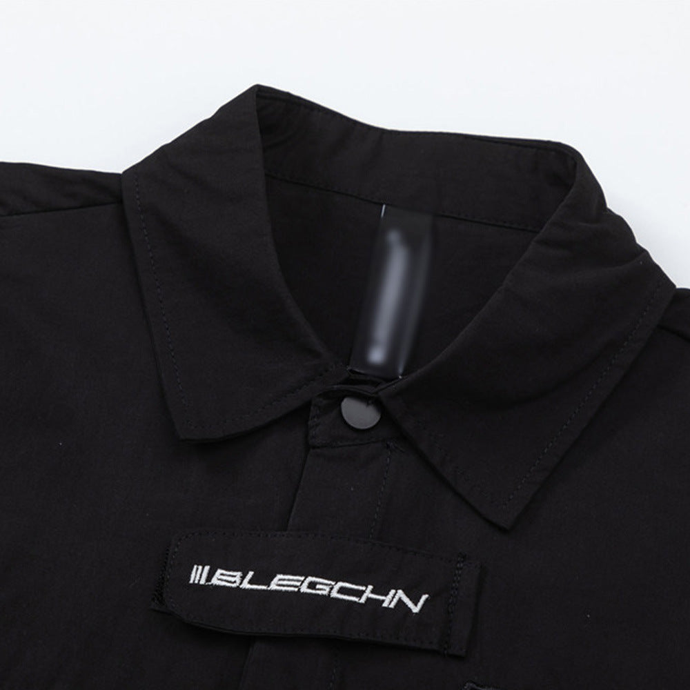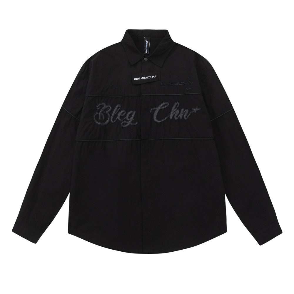 Men Long Sleeved T Shirt Embroidered Letter Long Sleeve Shirt Men's Loose Lapels Shirt