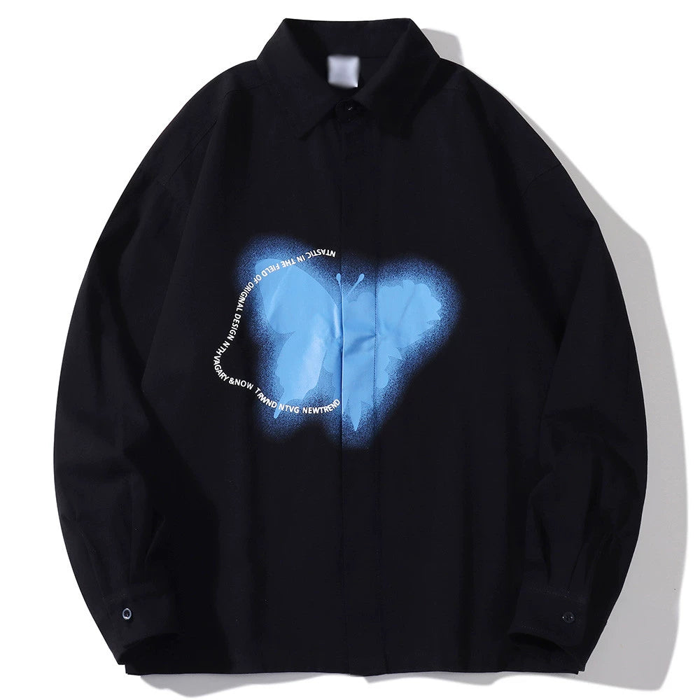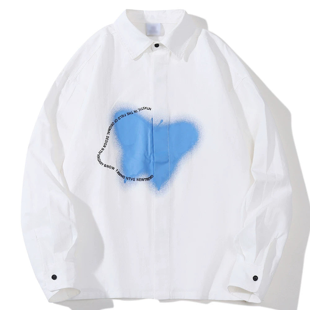 Men Long Sleeve T Shirt Ins Printed Long Sleeve Shirt Trendy Loose Lapels Shirt