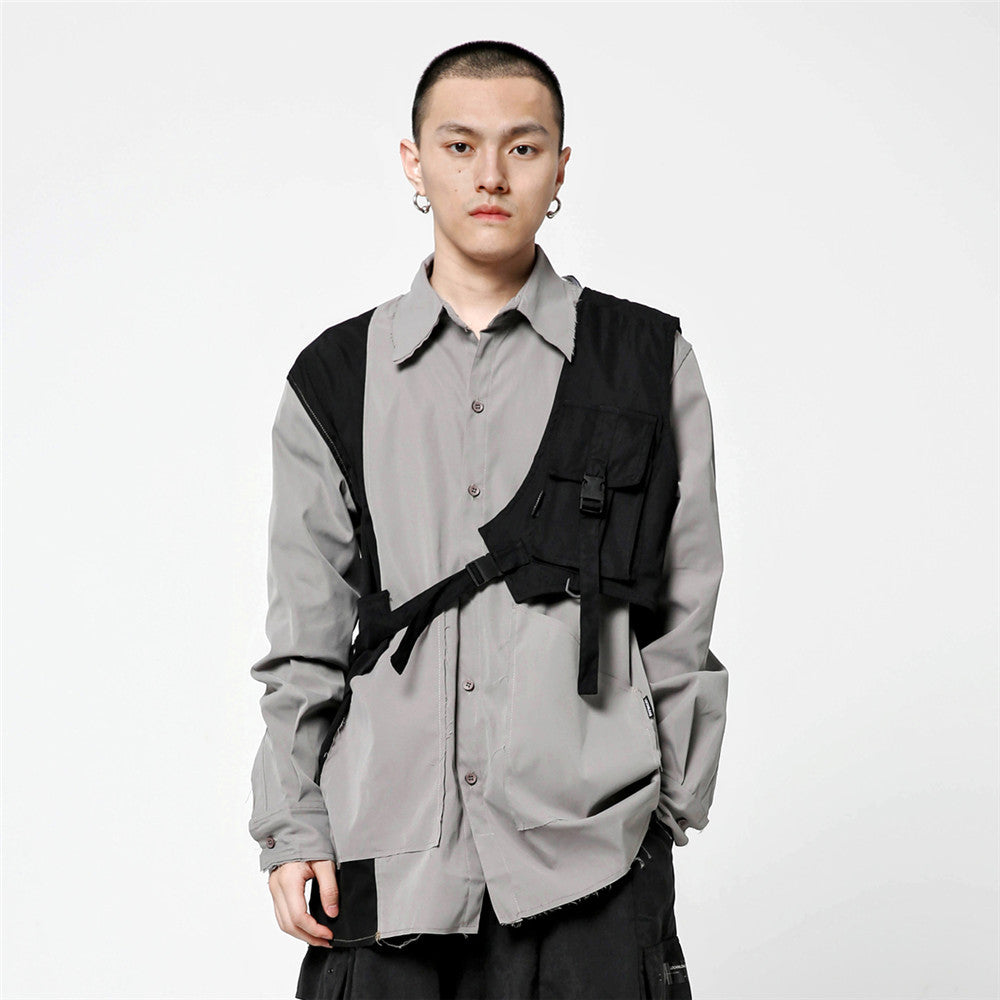 Men Long Sleeve T Shirt Stitching Long Sleeve Shirt Street BF Loose Multicolor Shirt