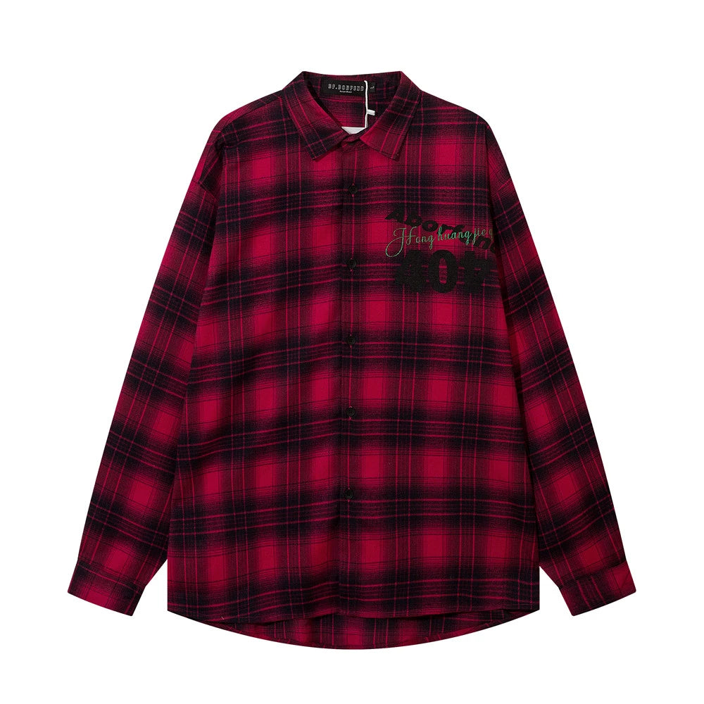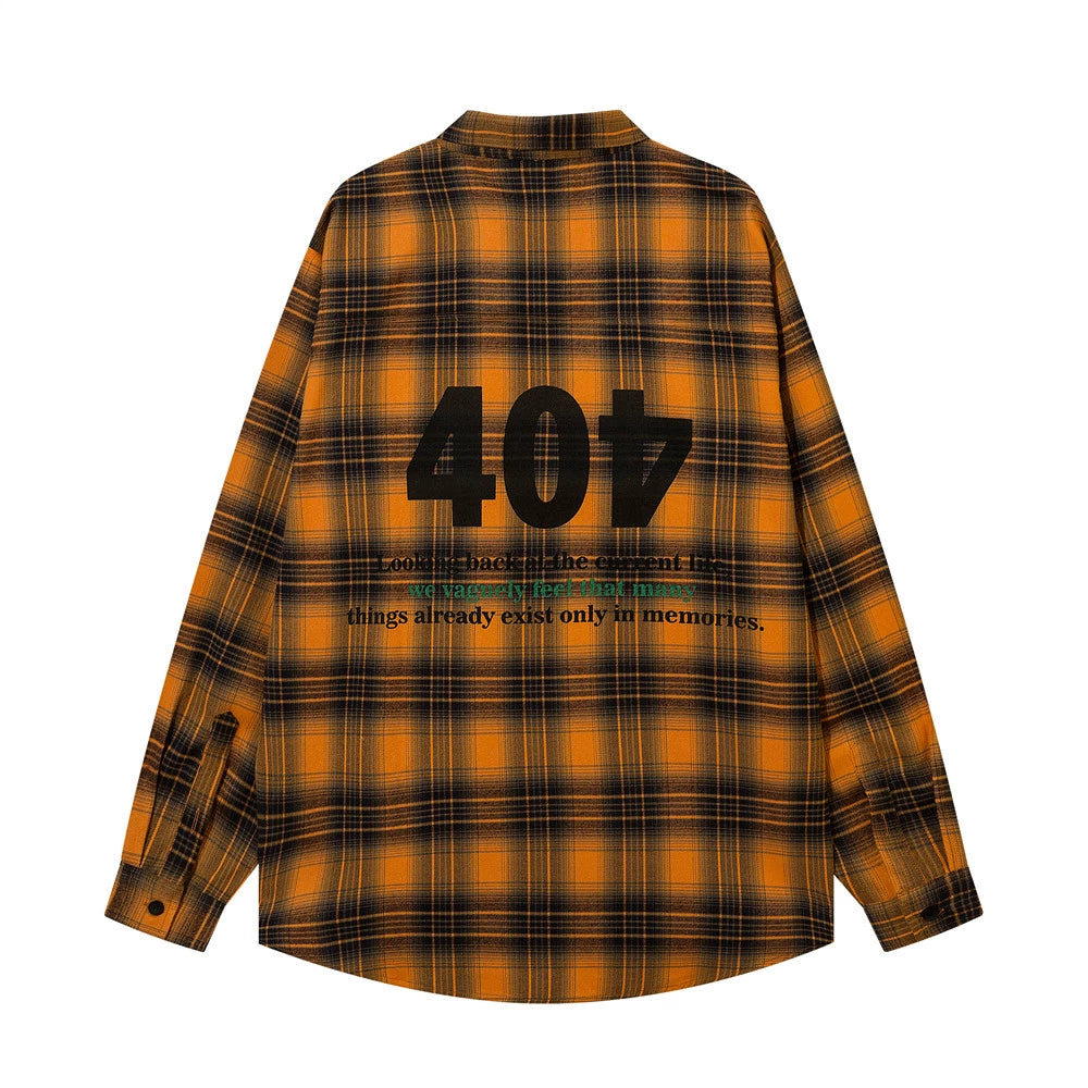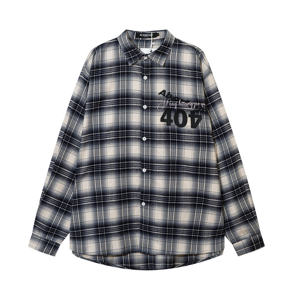 Men Long Sleeved T Shirt Plaid Shirt Digital Printing Letter Long Sleeve Top Loose Casual Shirt
