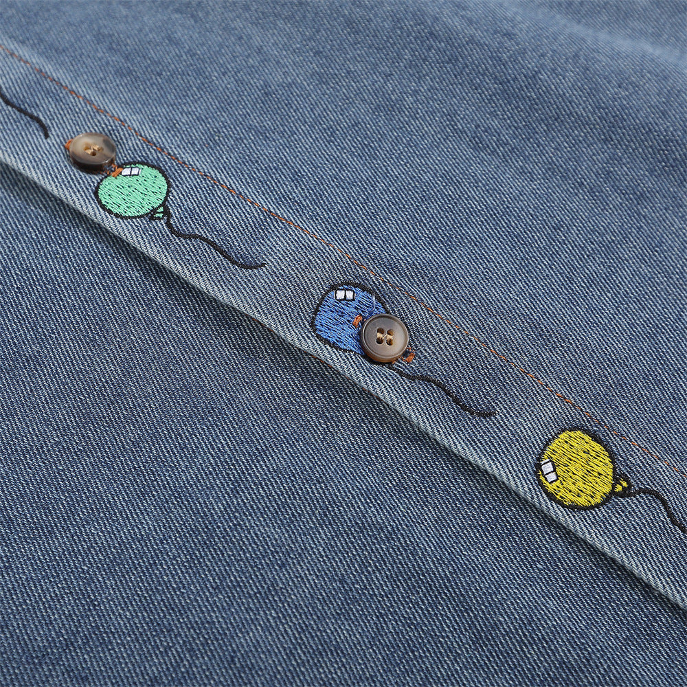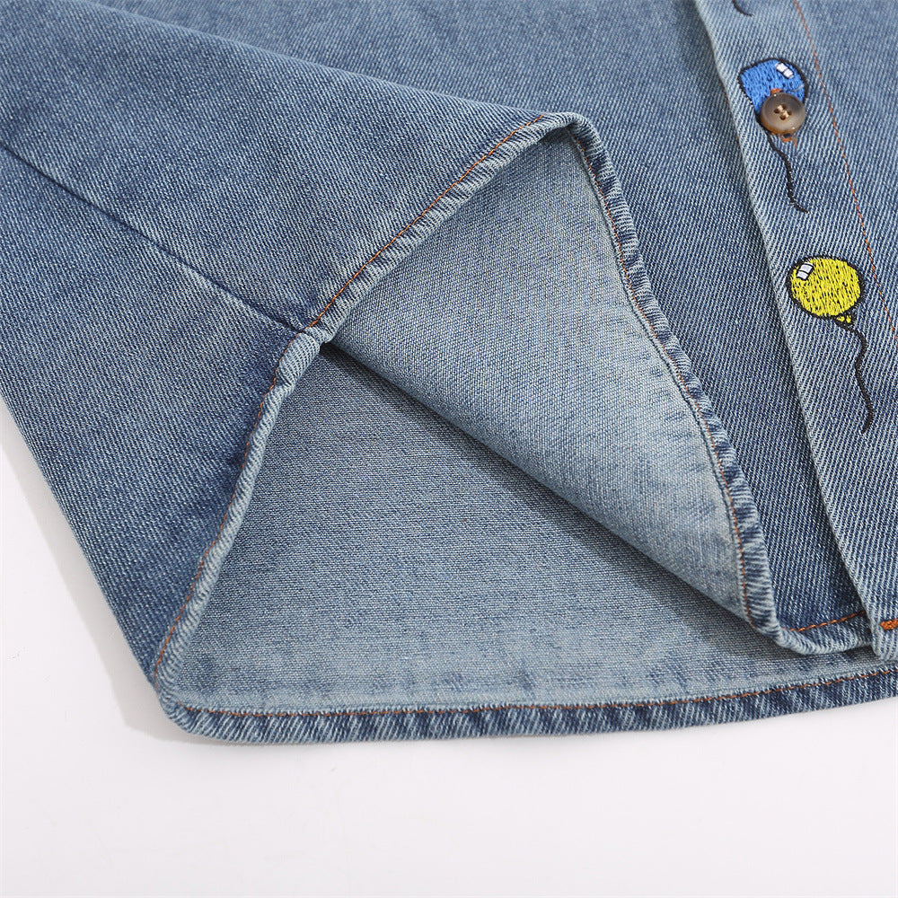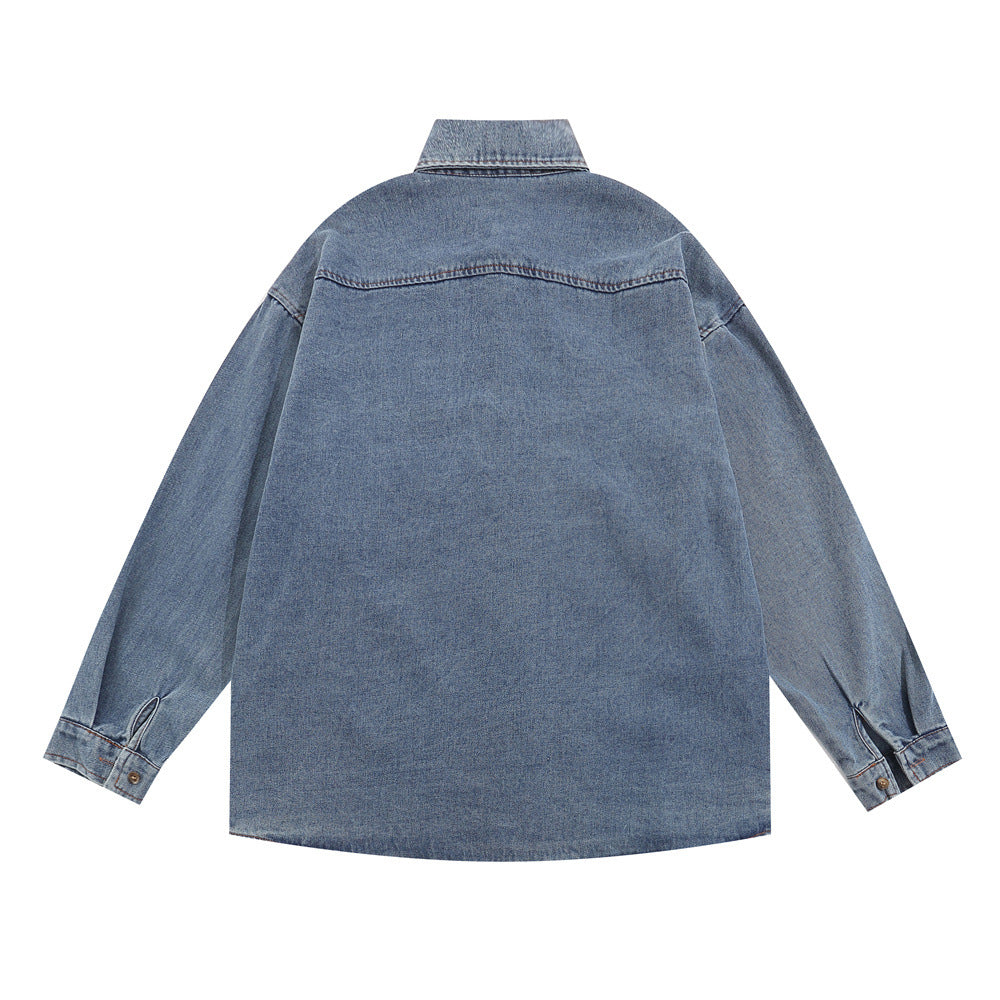 Men Long Sleeved T Shirt Embroidered Mickey Donald Duck Long Sleeve Shirt Men's Ins Trendy Denim Jacket