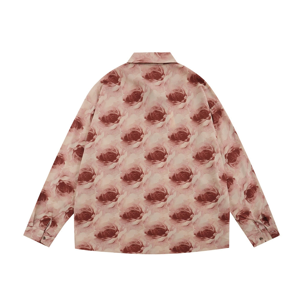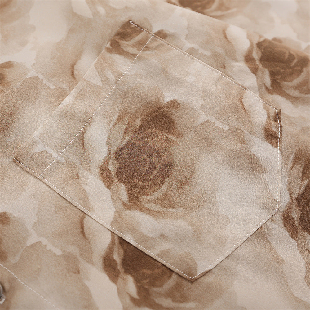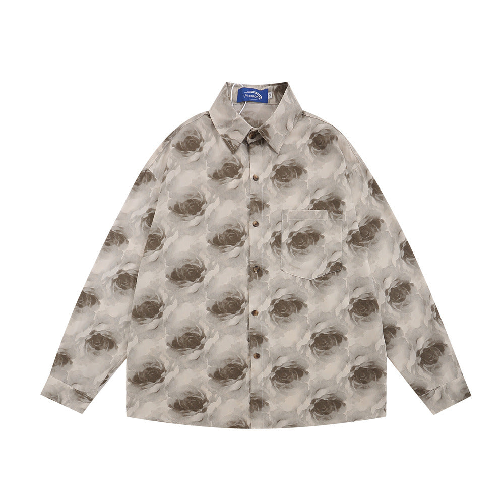 Men Long Sleeved T Shirt Hawaiian Drape Floral Shirt Men's Spring and Autumn Loose Lapel Long Sleeves Shirt