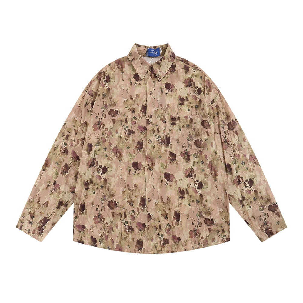 Men Long Sleeved T Shirt Floral Print Long Sleeve Shirt Men's Loose Spring and Autumn Lapel Shirt