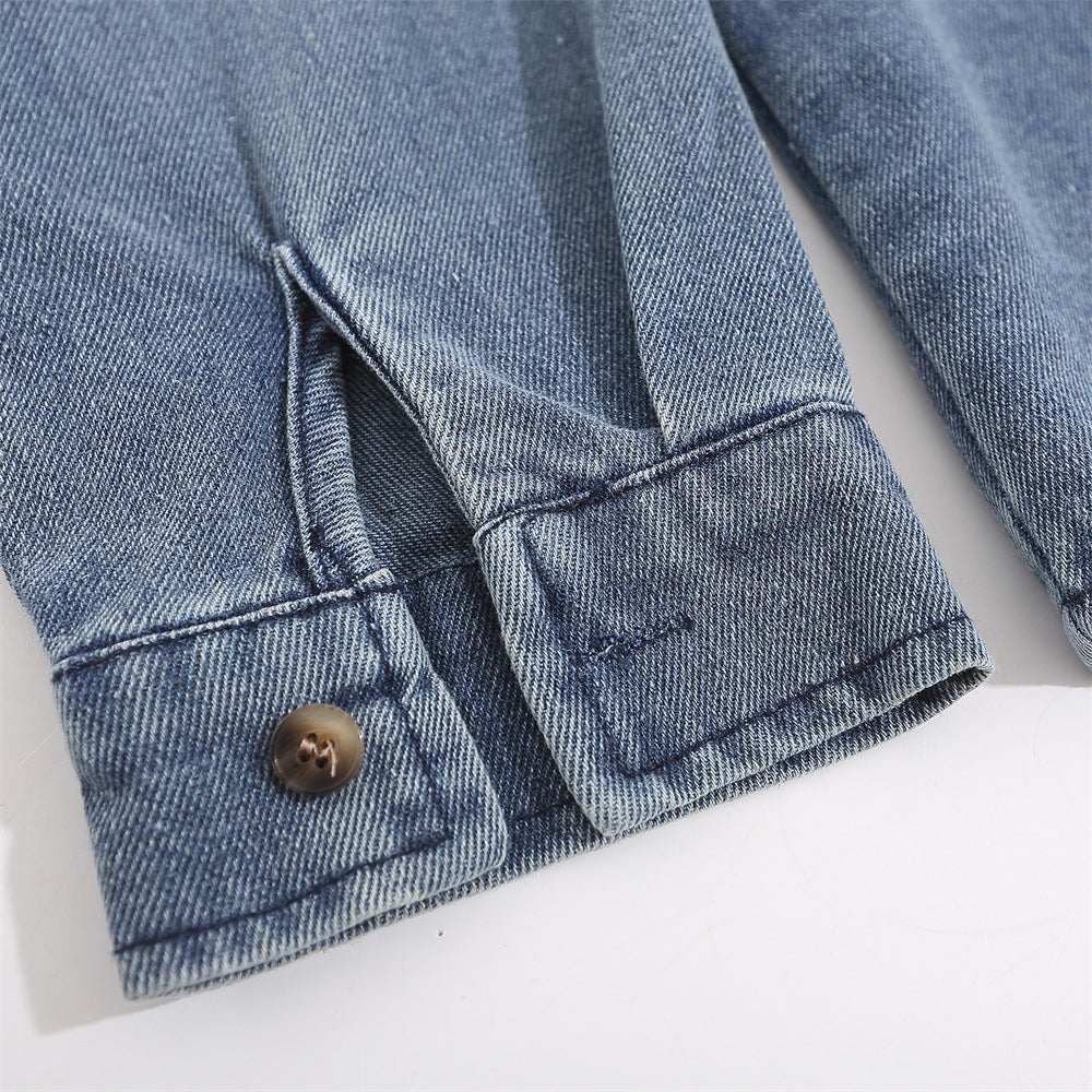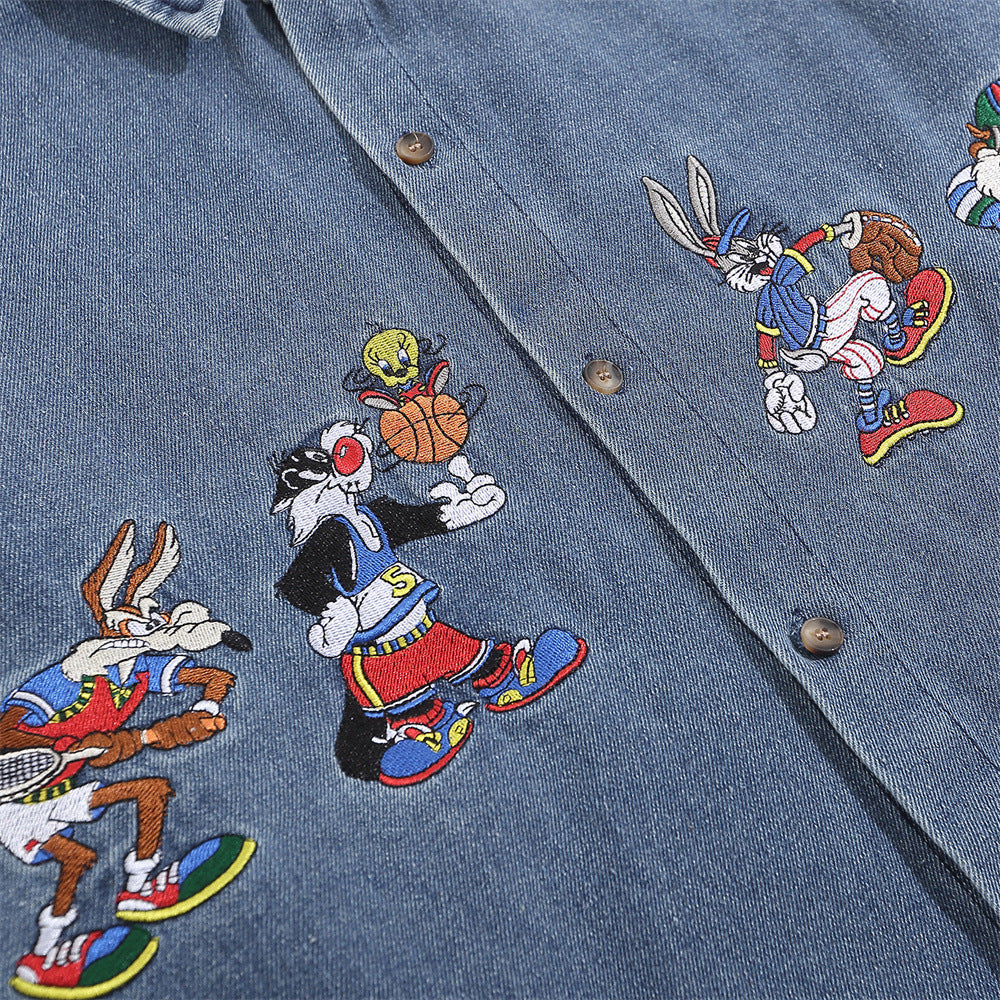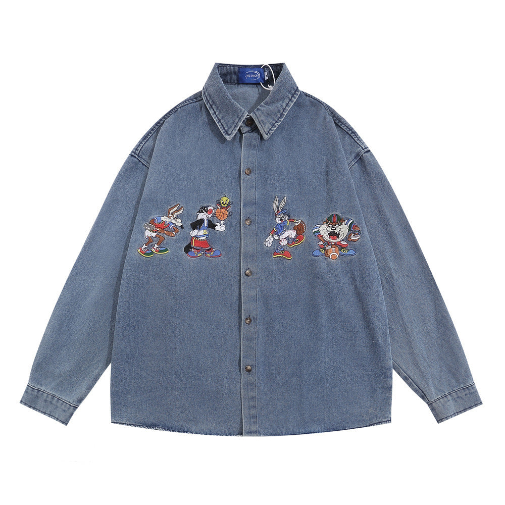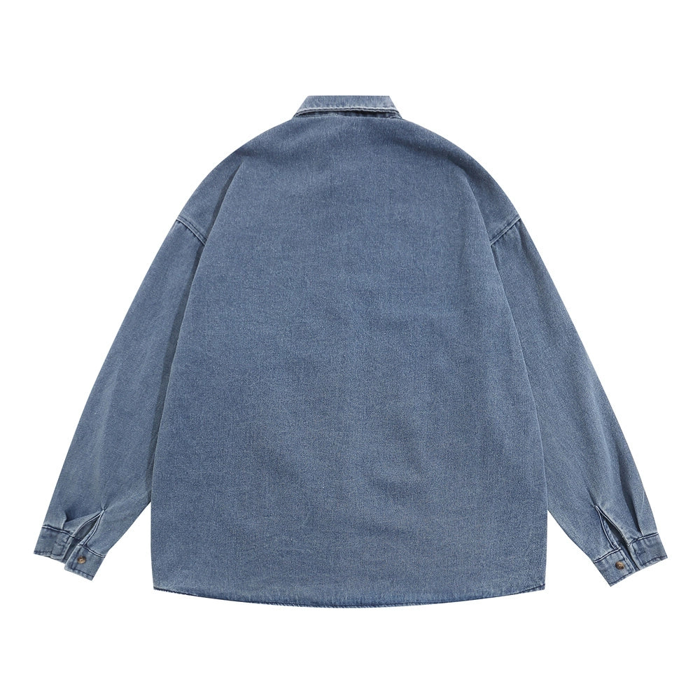 Men Long Sleeved T Shirt Embroidered Denim Shirt All-Matching Loose Casual Spring and Autumn Long Sleeve Shirt Coat