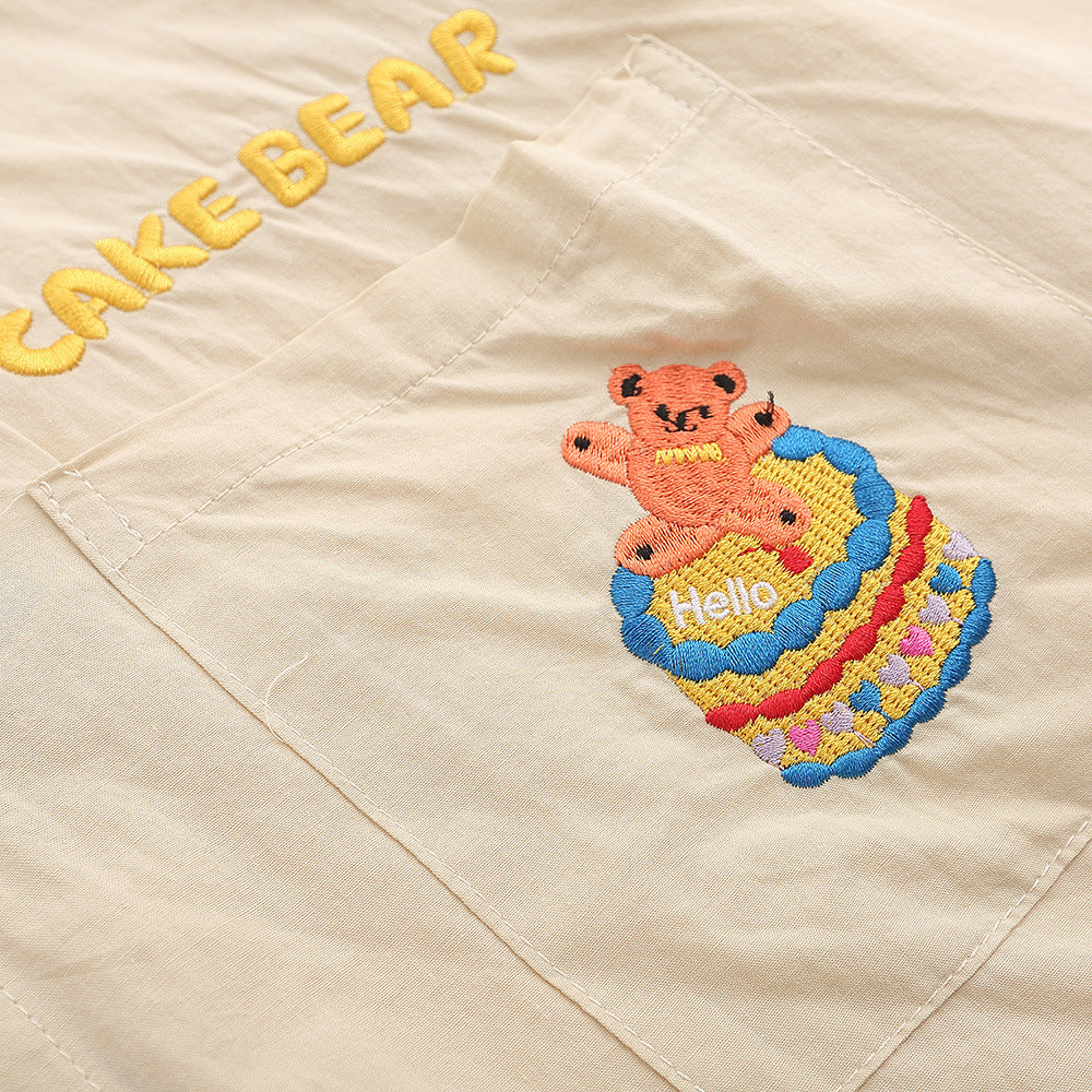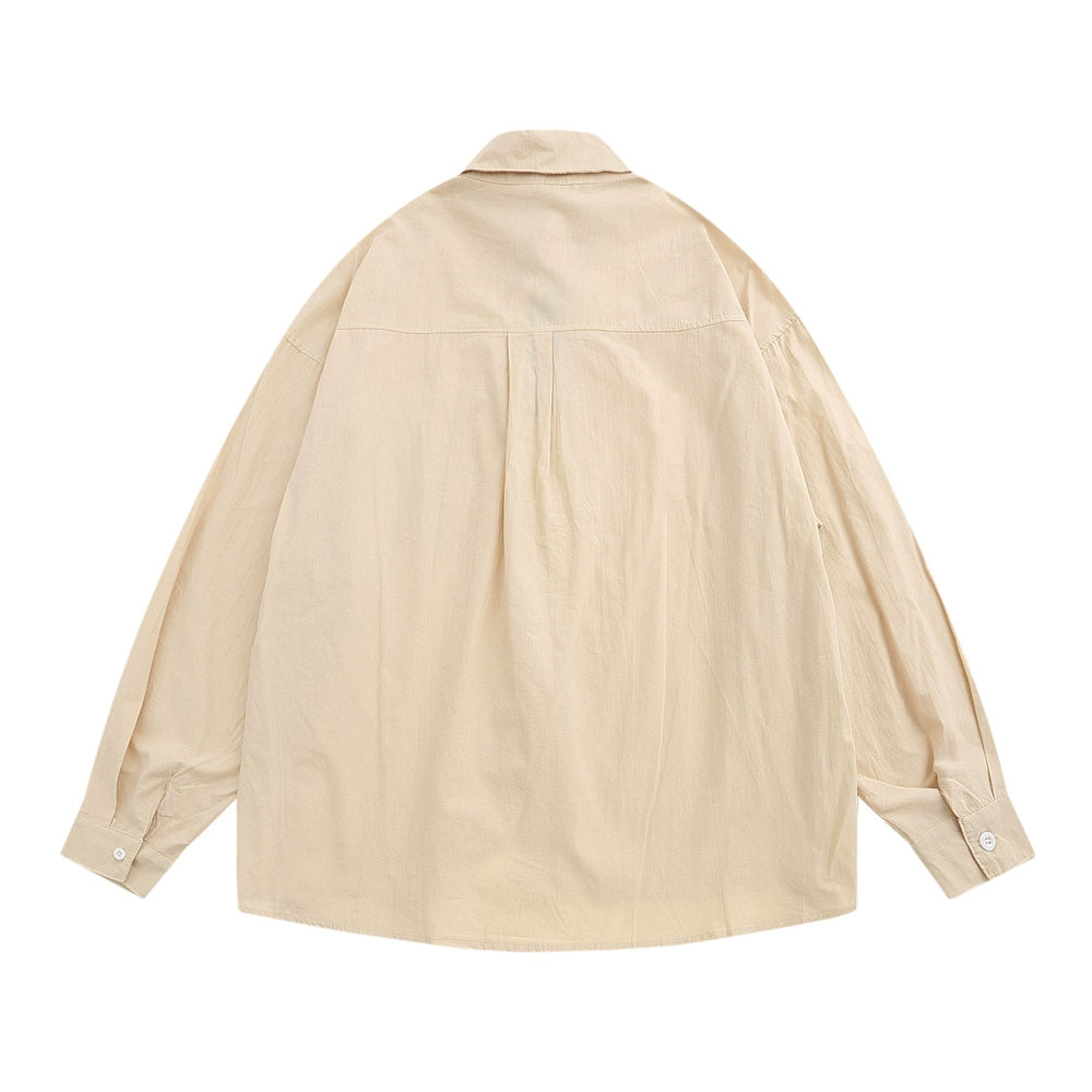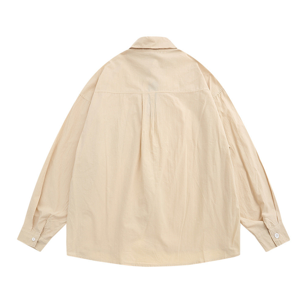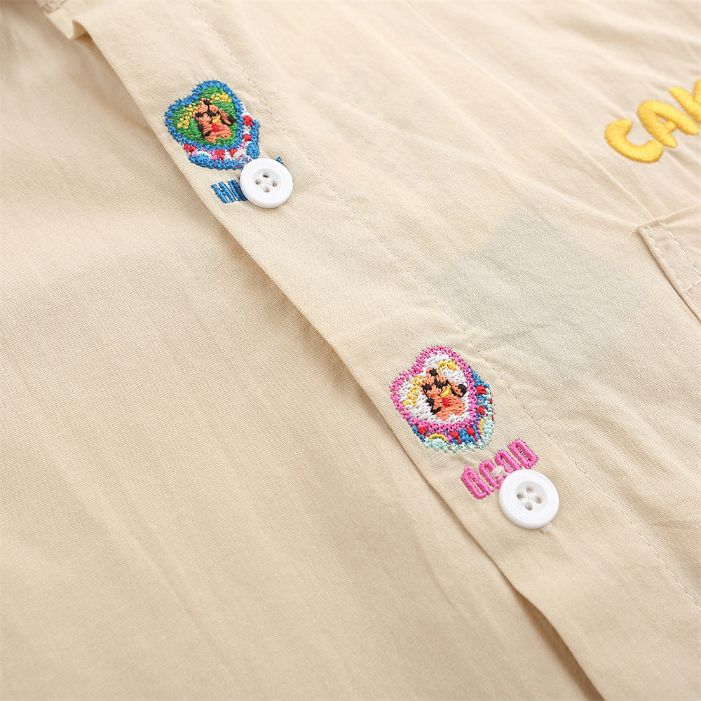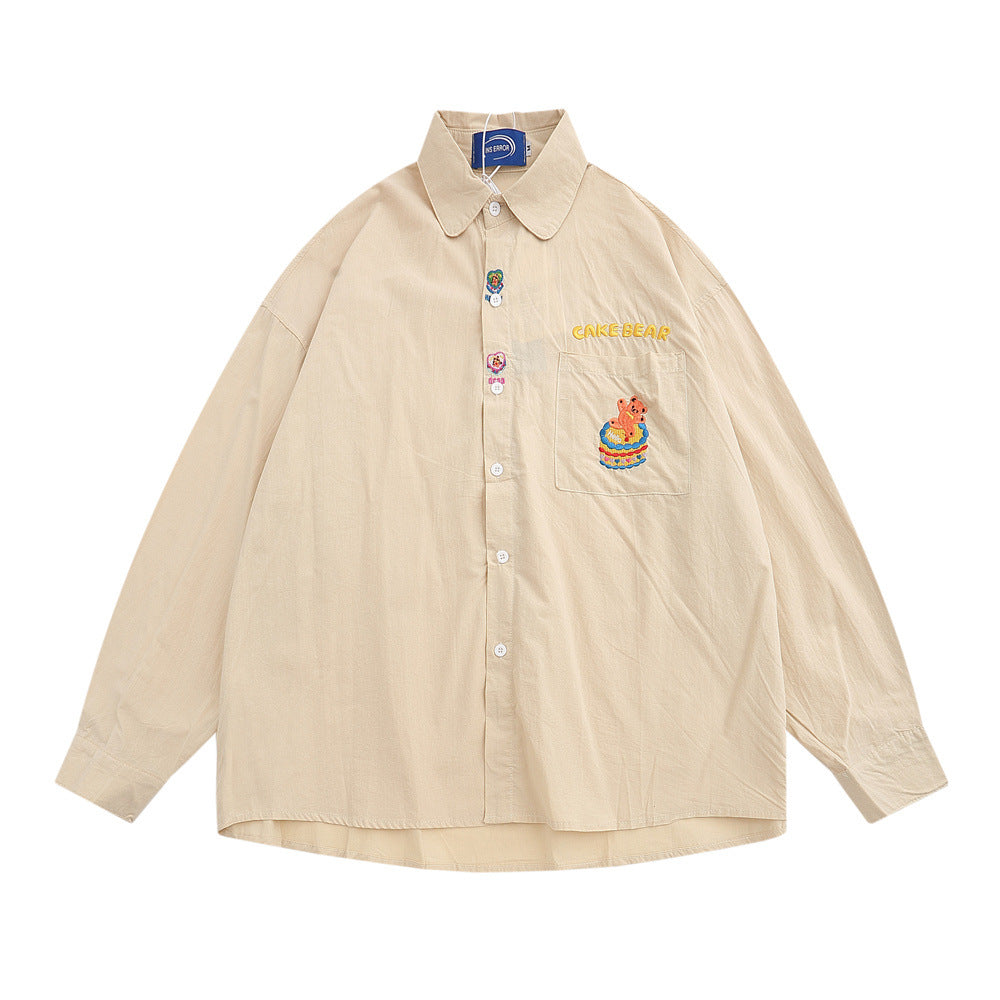 Men Long Sleeved T Shirt Cartoon Embroidery Shirt Coat Men's Loose Casual Spring and Autumn Long Sleeve Shirt
