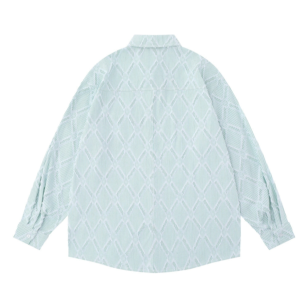 Men Long Sleeved T Shirt Pinstripe Long Sleeve Shirt Men Spring and Autumn Patchwork Shirt Loose Casual