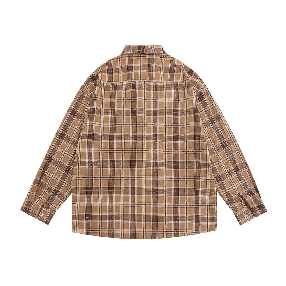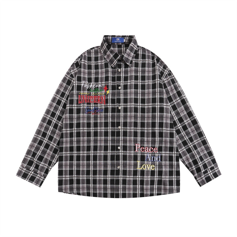 Men Long Sleeved T Shirt Loose Plaid Long Sleeve Shirt Men Casual Embroidery Letter Vintage Shirt