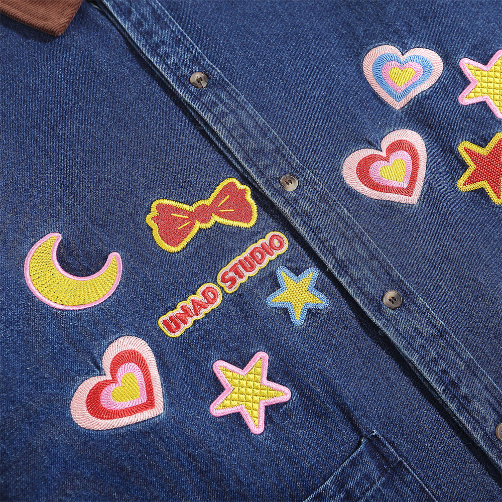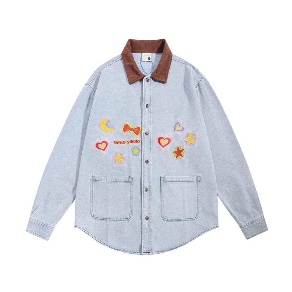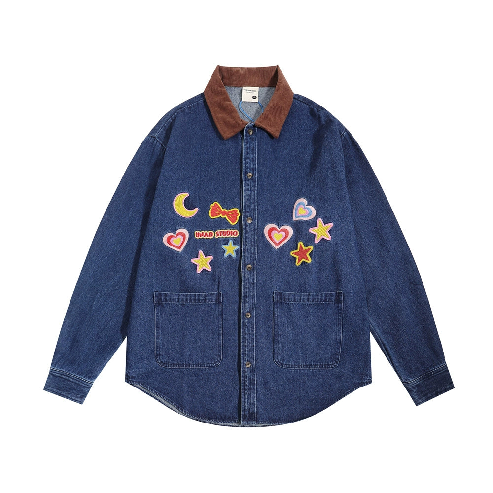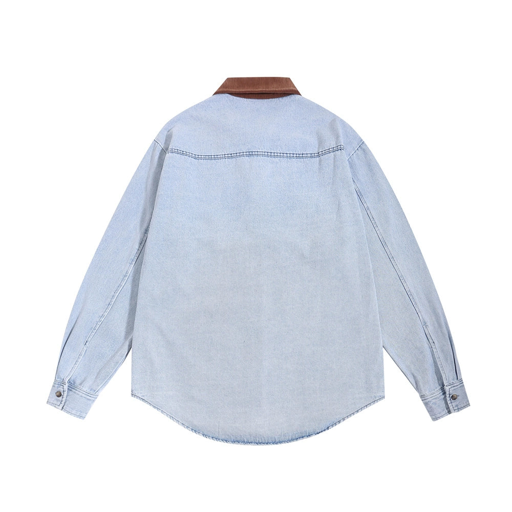 Men Long Sleeved T Shirt XINGX Embroidered Denim Shirt Men Fashion Brands Loose Pockets Long Sleeve Shirt Coat