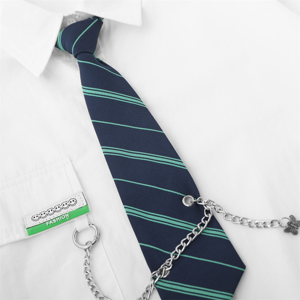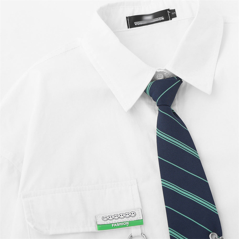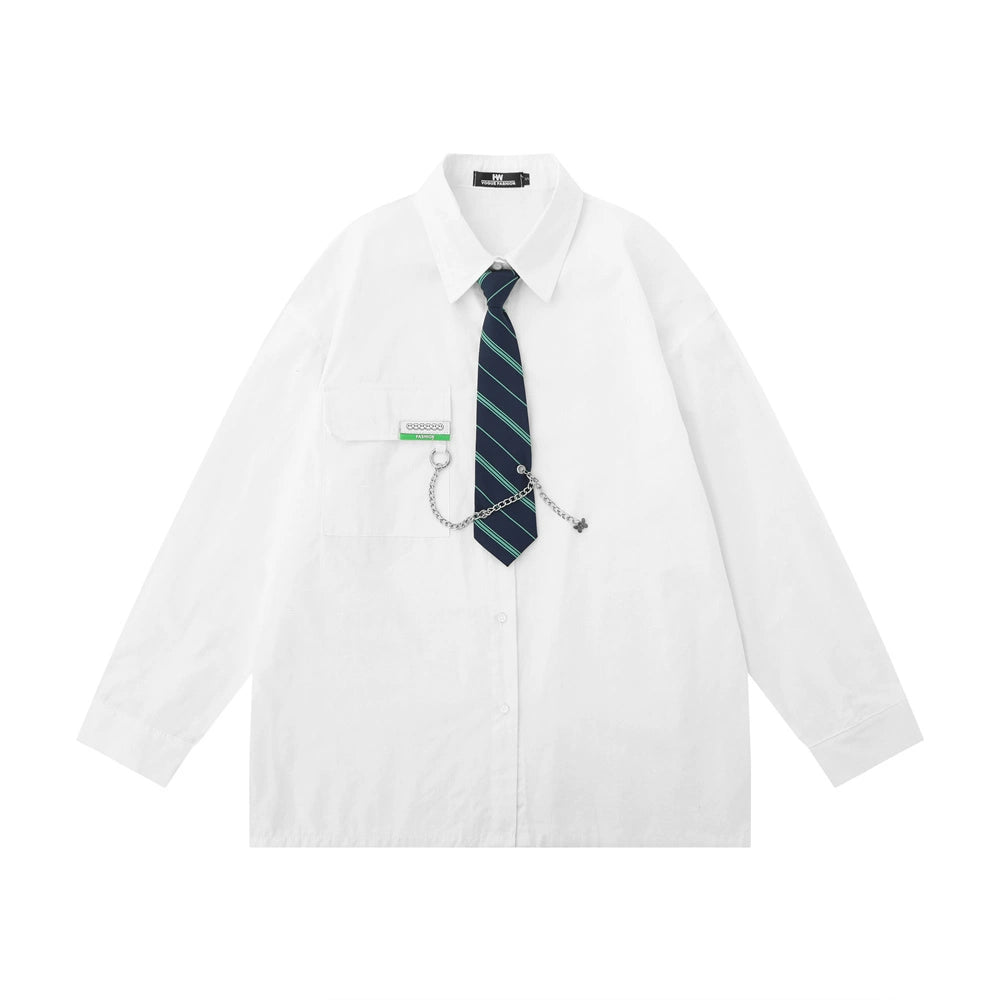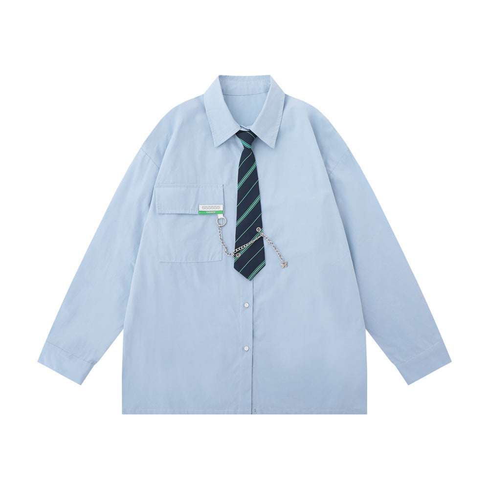 Men Long Sleeve T Shirt Men's Spring and Autumn Loose Chain Decoration Shirt