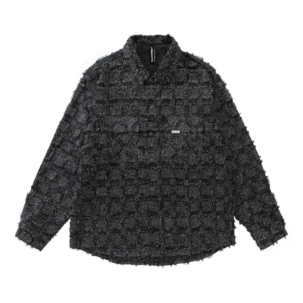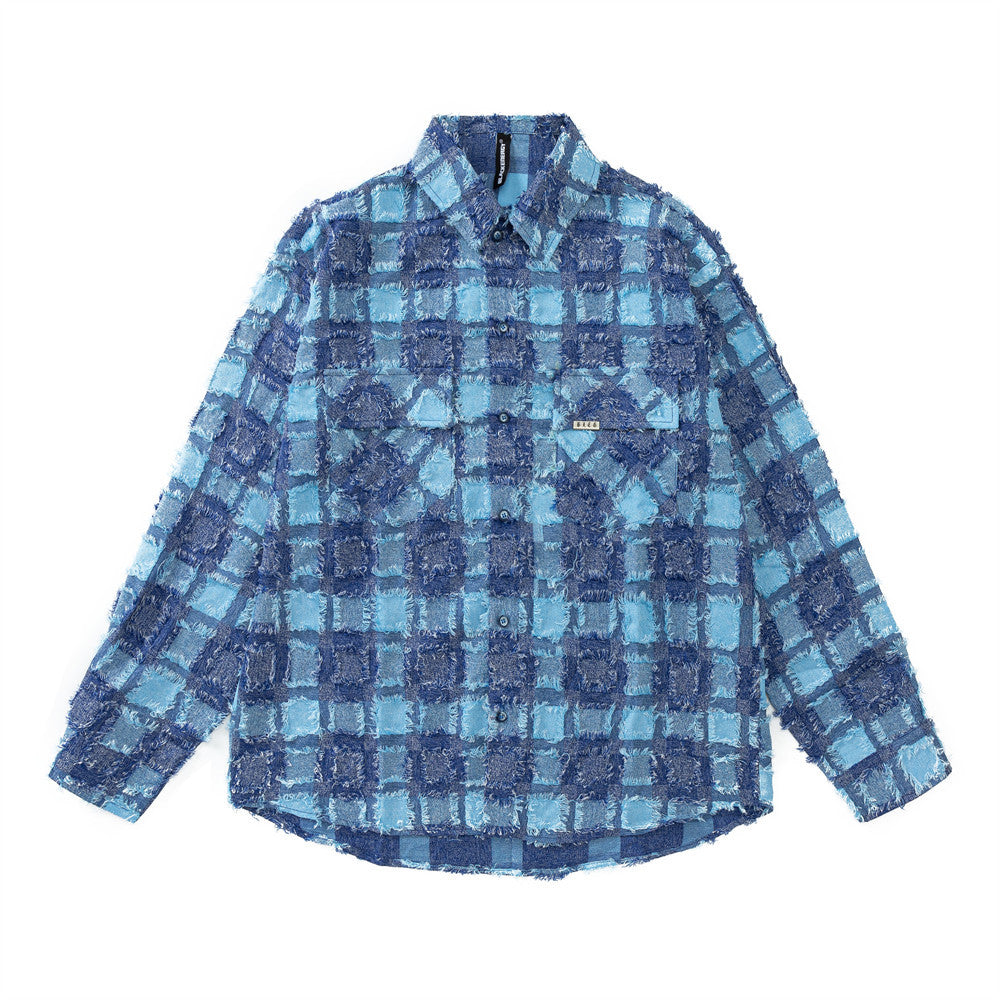 Men Long Sleeved T Shirt Plaid Cat Beard Long Sleeve Shirt Loose Embroidered Letter Shirt