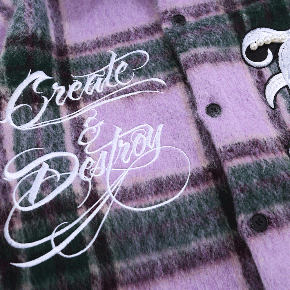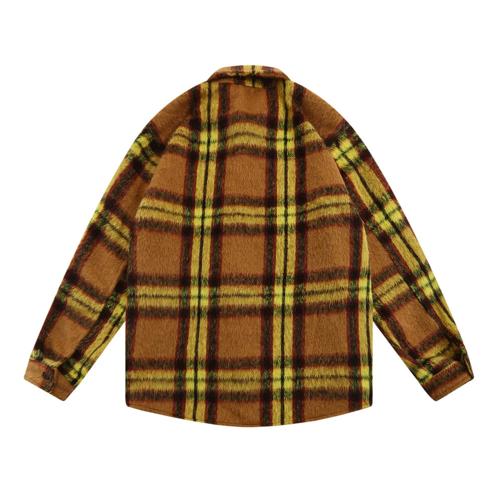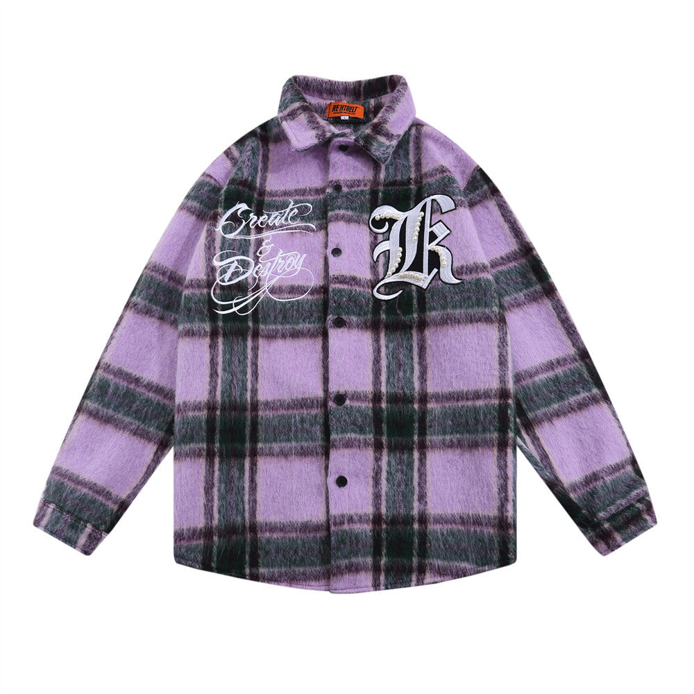Men Long Sleeved T Shirt Embroidered Letters Colorblock Check Shirt Men's Ins Loose