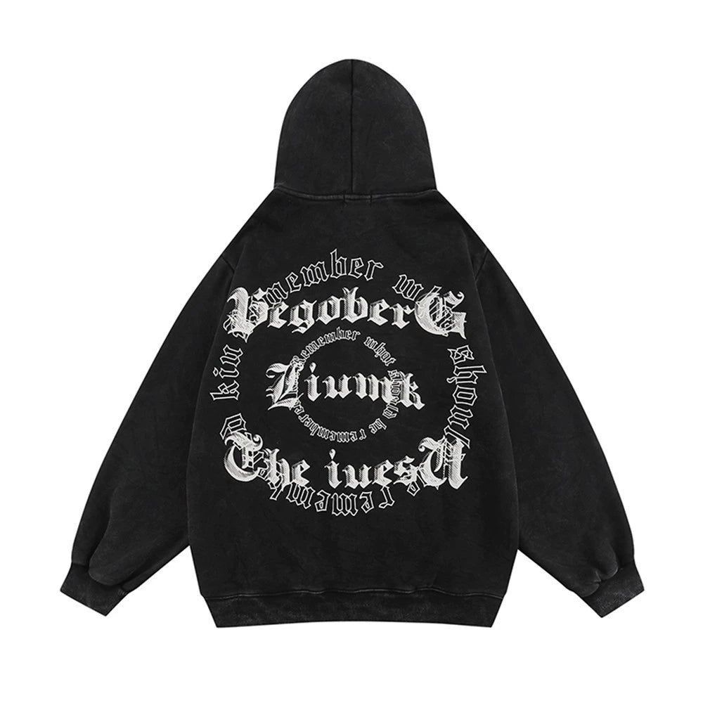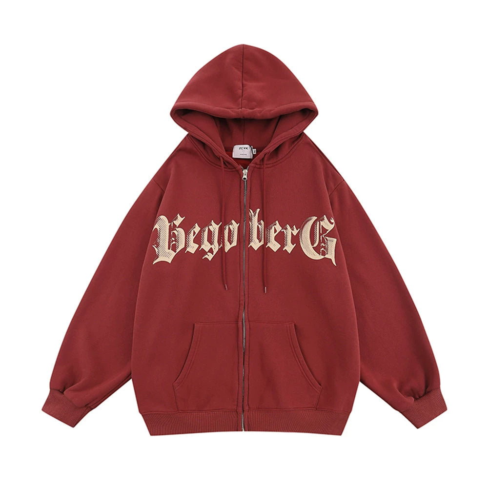 Men Fleece Lined Hoodie Letter Print Hooded Cardigan Sweater Male Loose Zipped Sports Coat
