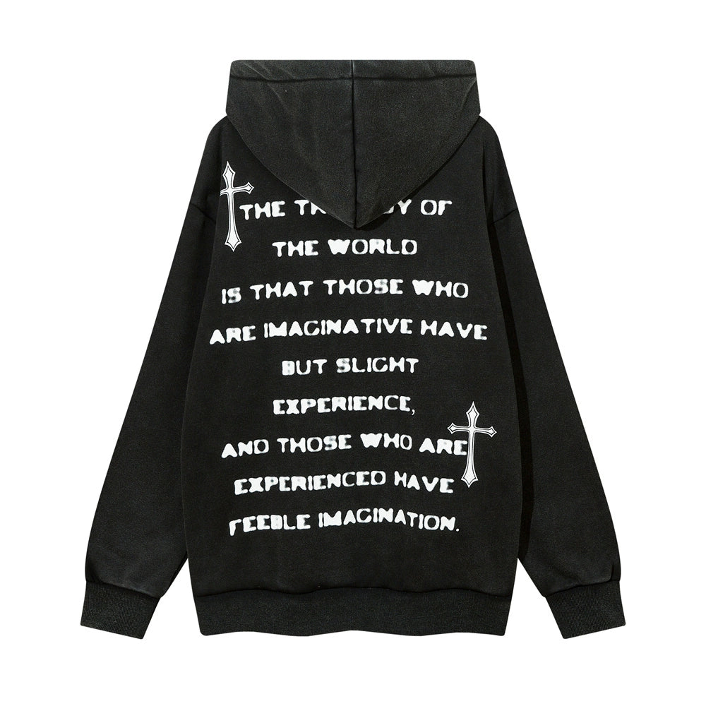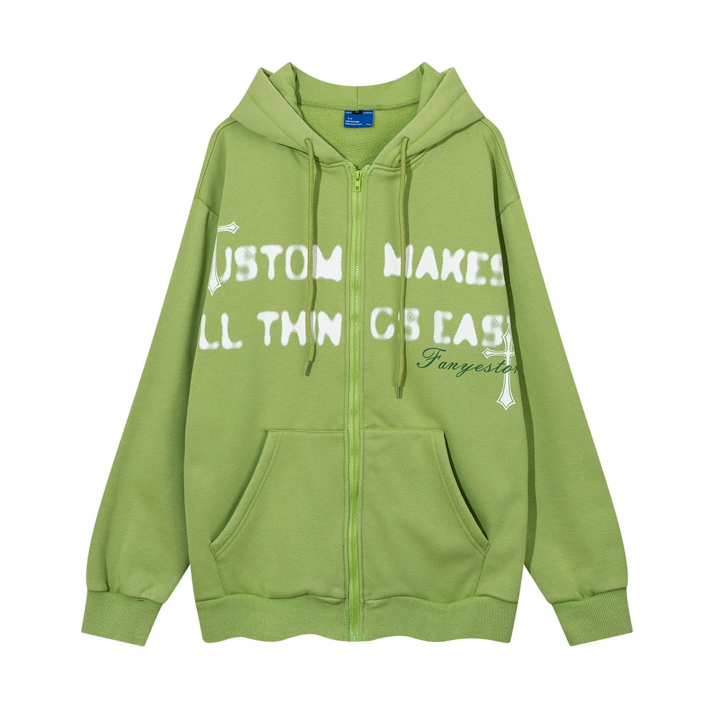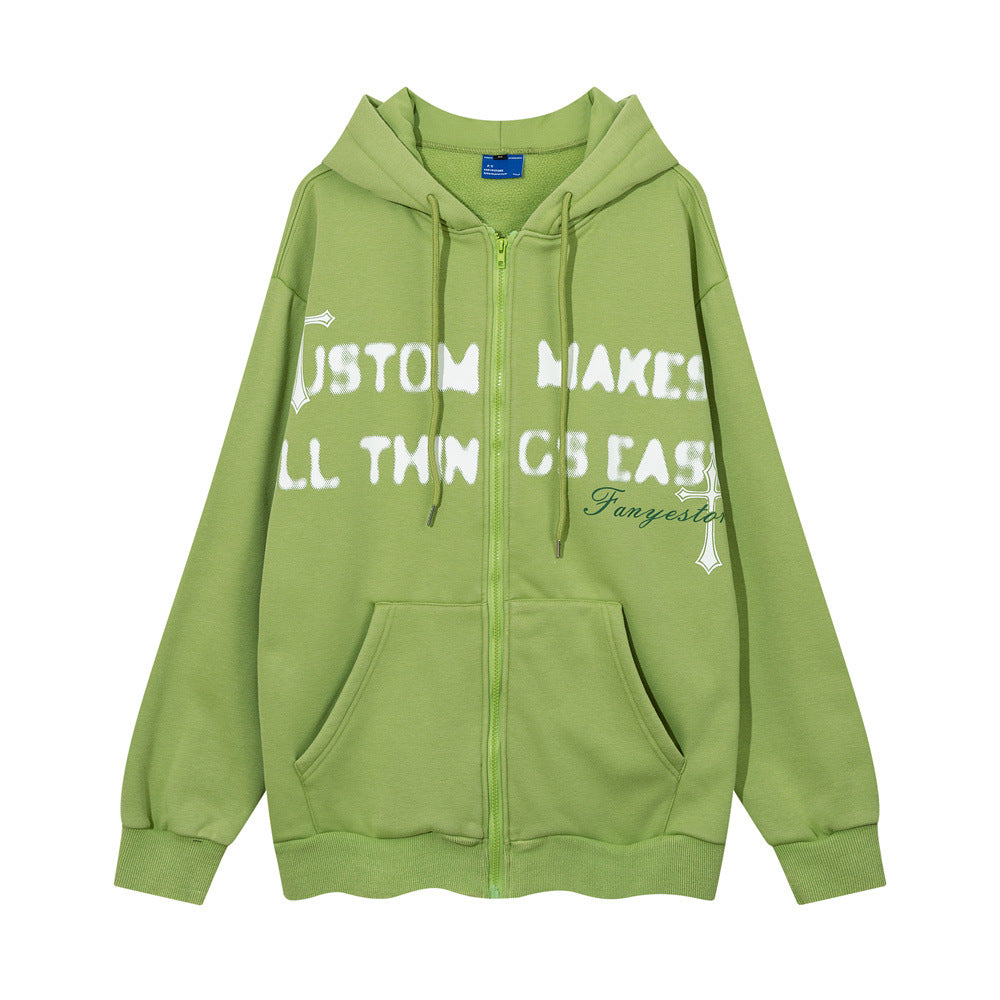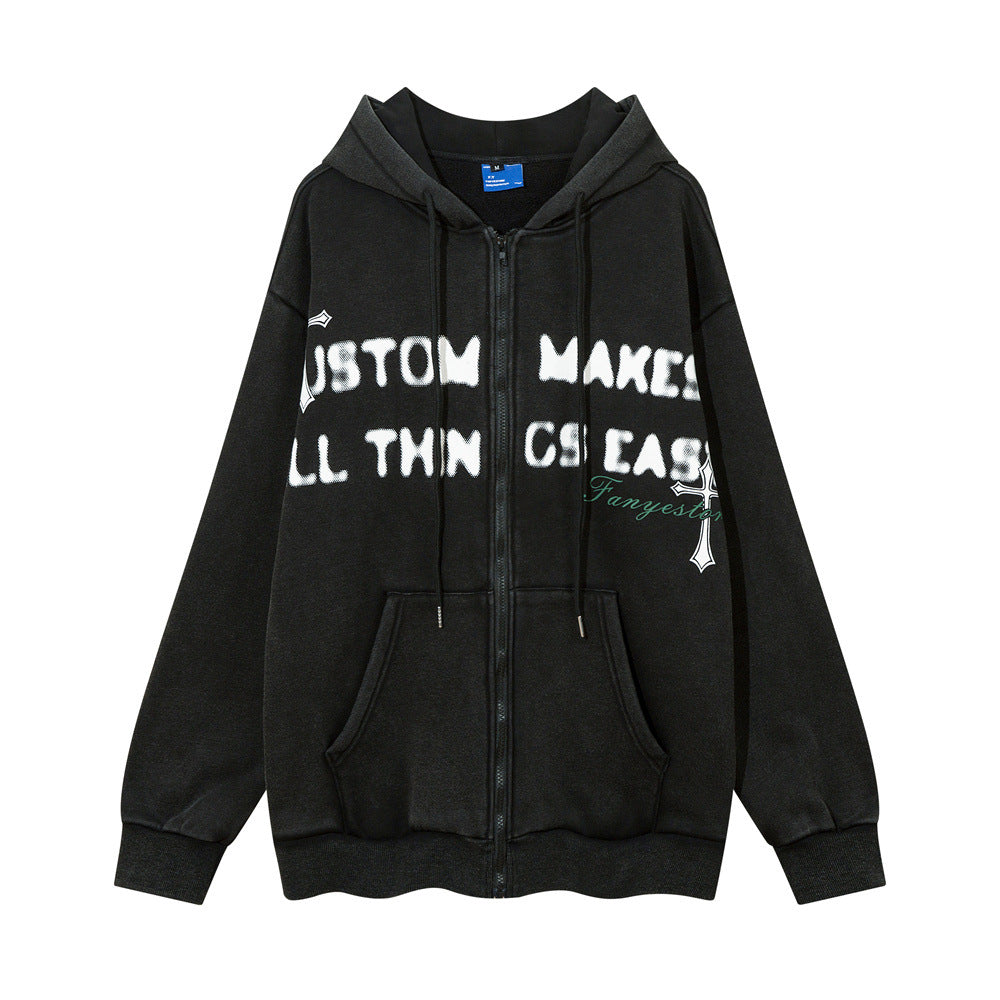 Men Fleece Lined Hoodie Winter Hooded Jacket Men's High Street Letter Printing Distressed Sweater