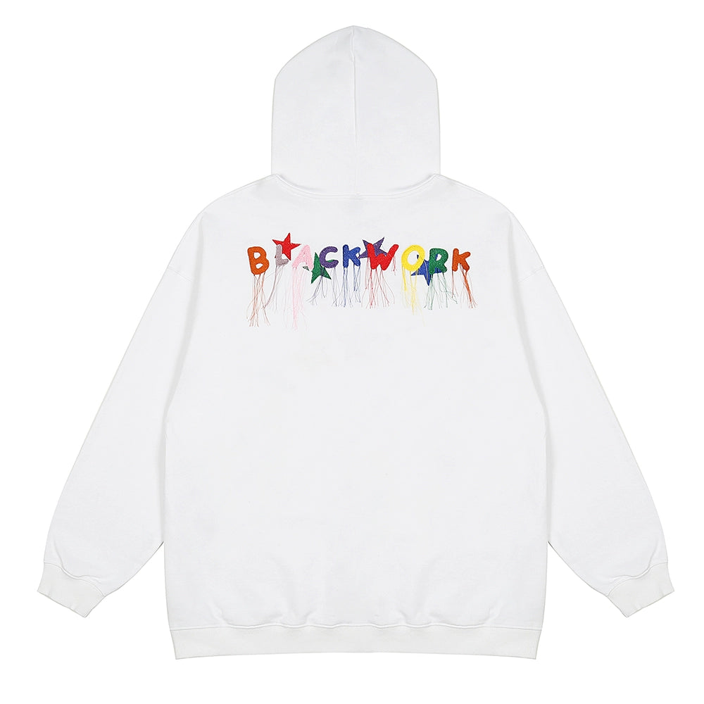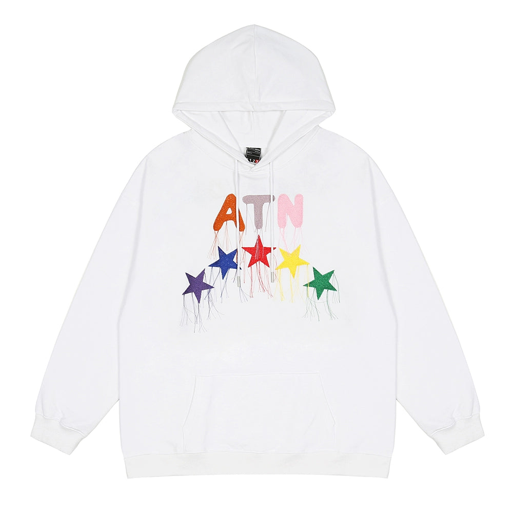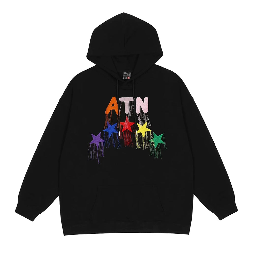 Men Fleece Lined Hoodie High Street Hooded Sweaters Menswear Ins Loose Casual Five-Pointed Star Embroidery