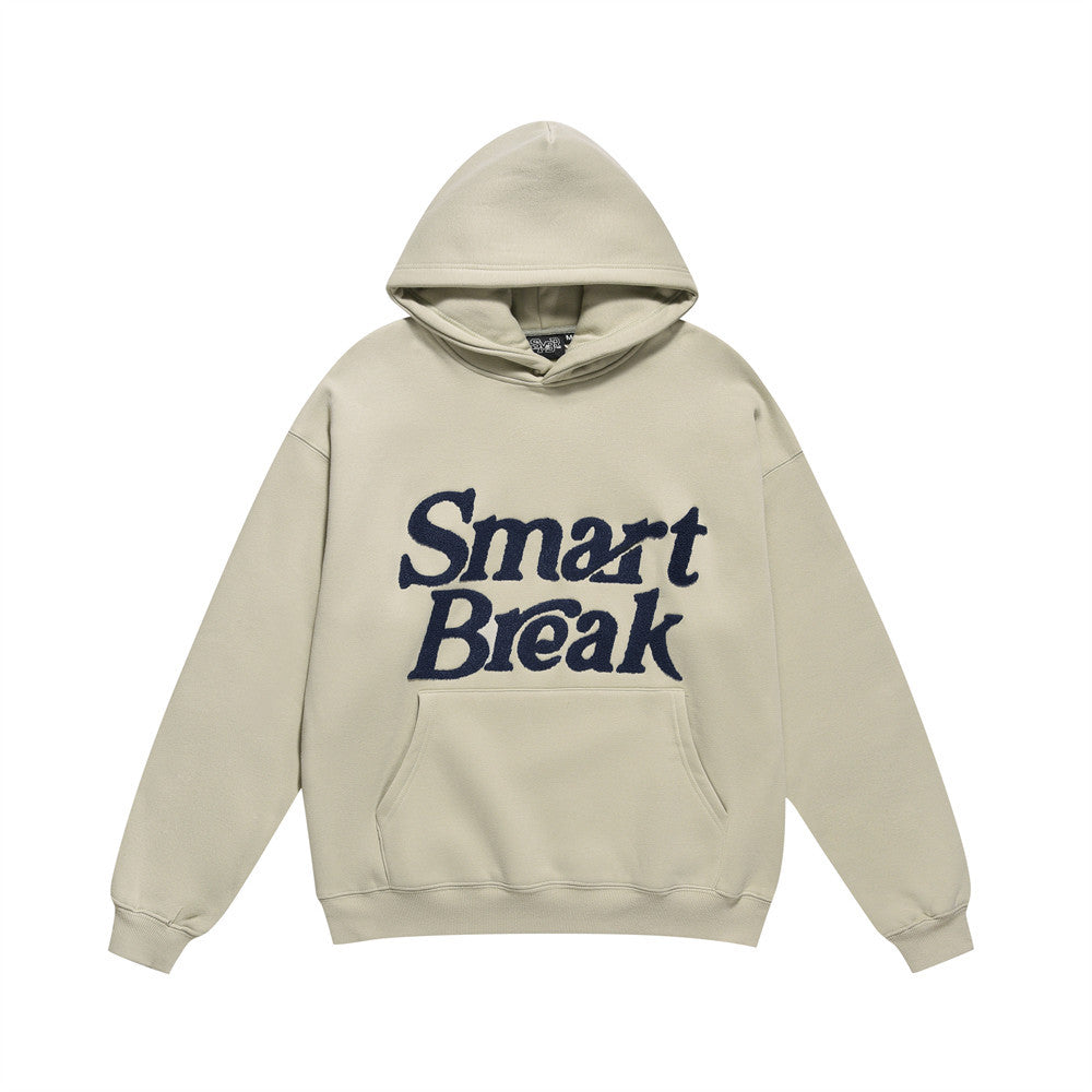 Men Fleece Lined Hoodie Autumn and Winter Embroidery Letter Hooded Sweater Men Oversize Loose Casual