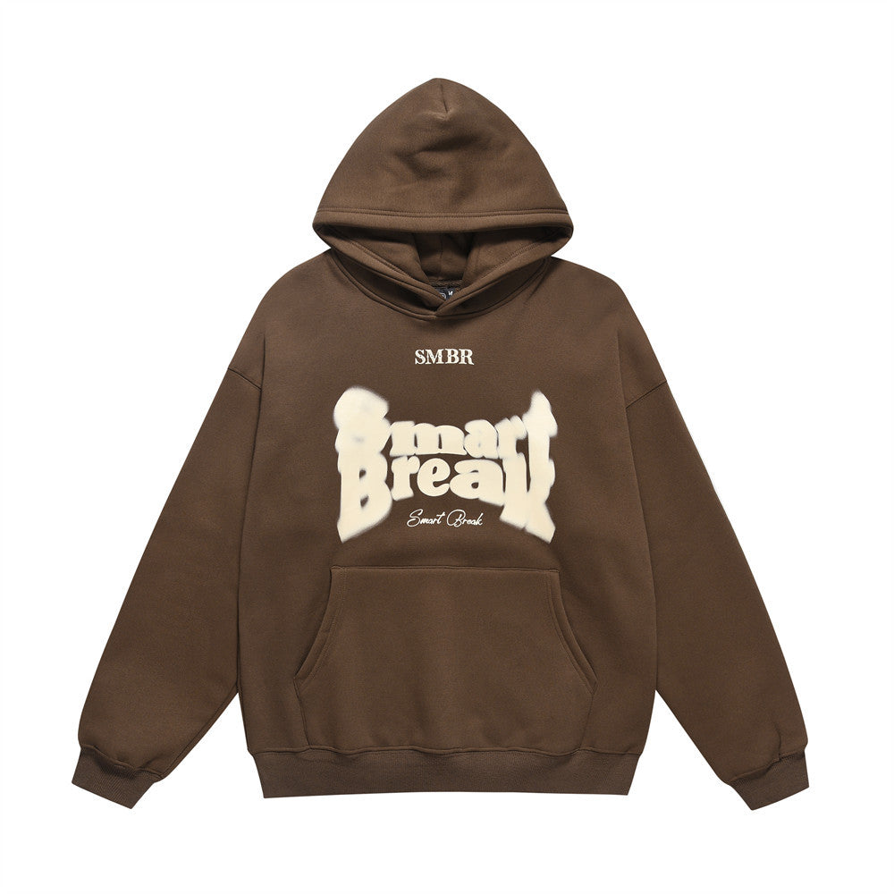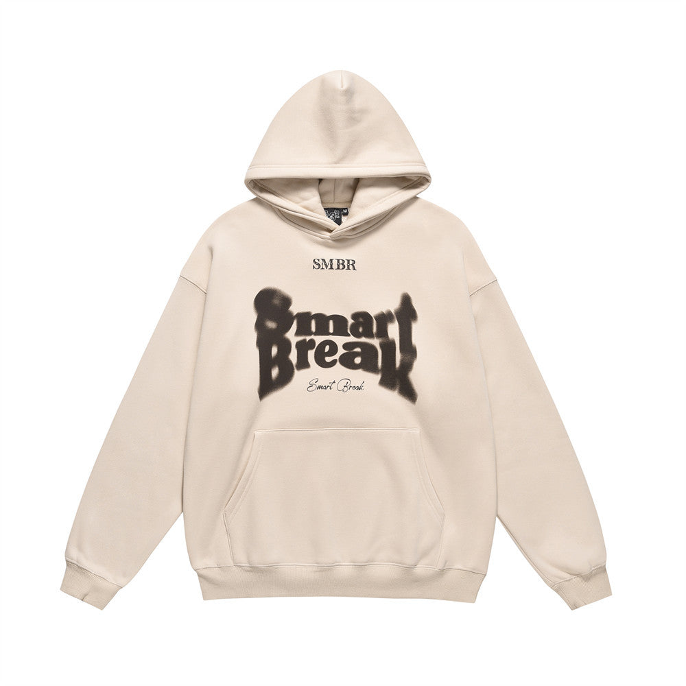 Men Fleece Lined Hoodie Winter Hooded Sweater Men Oversize Letters Printed Loose Long Sleeves