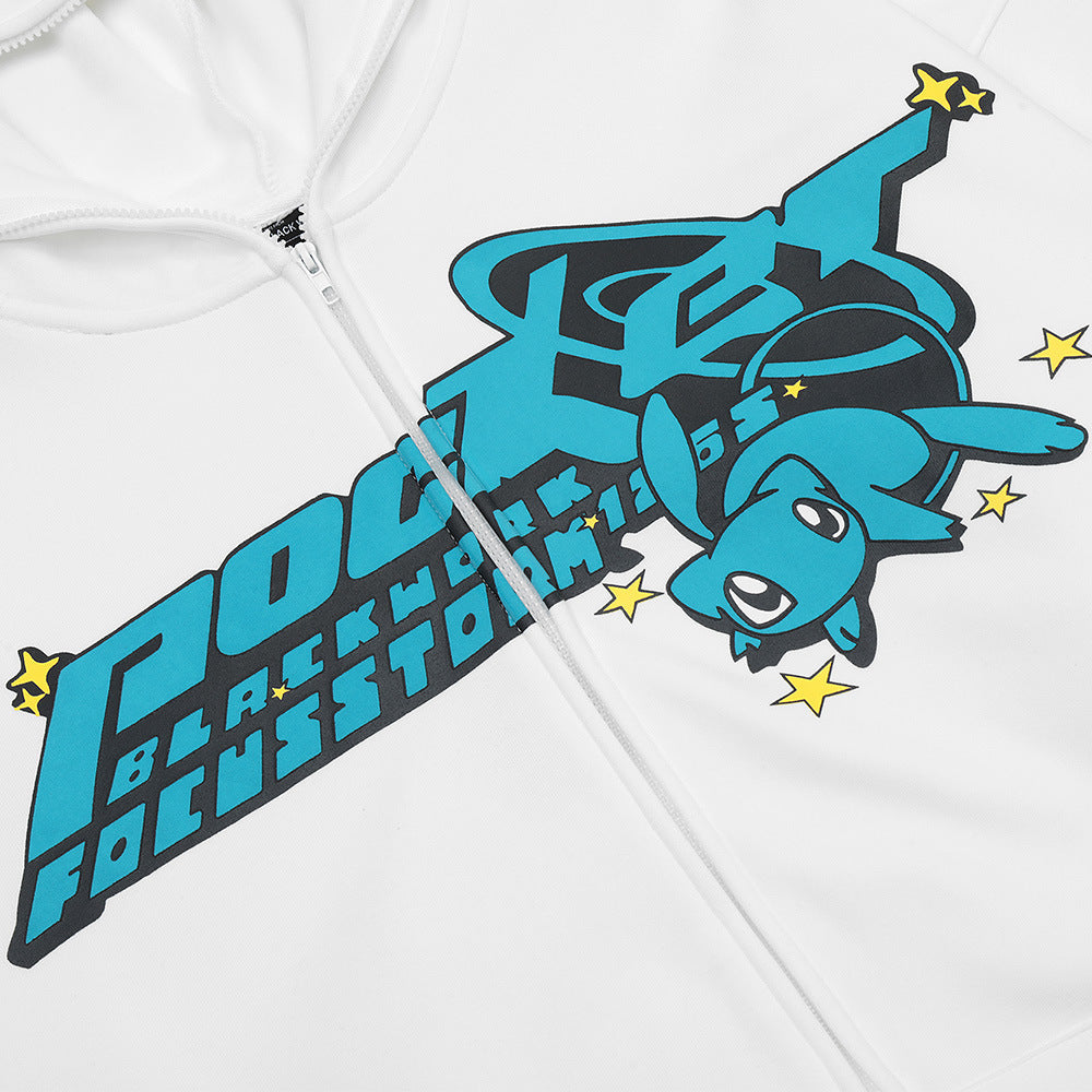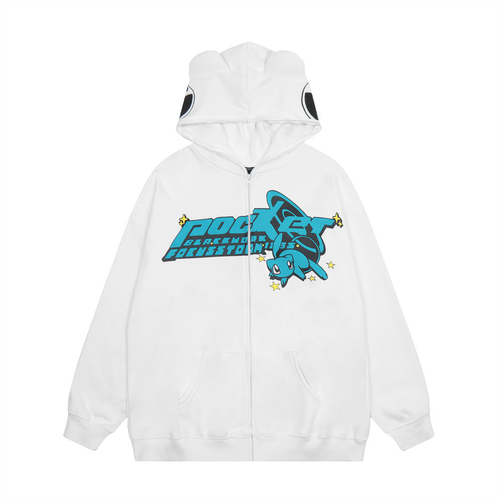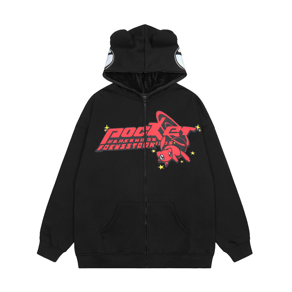 Men Fleece Lined Hoodie Letter Hooded Cardigan Sweater Men's Autumn and Winter Baggy Coat
