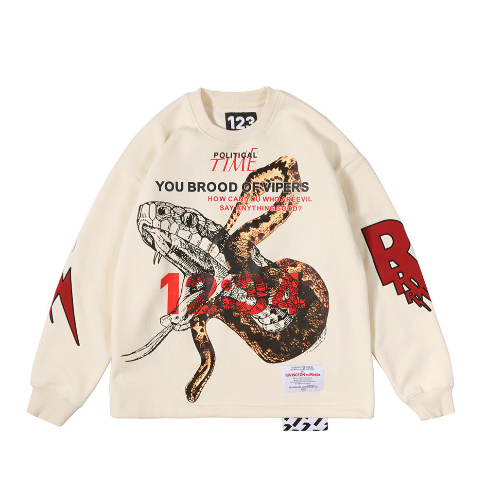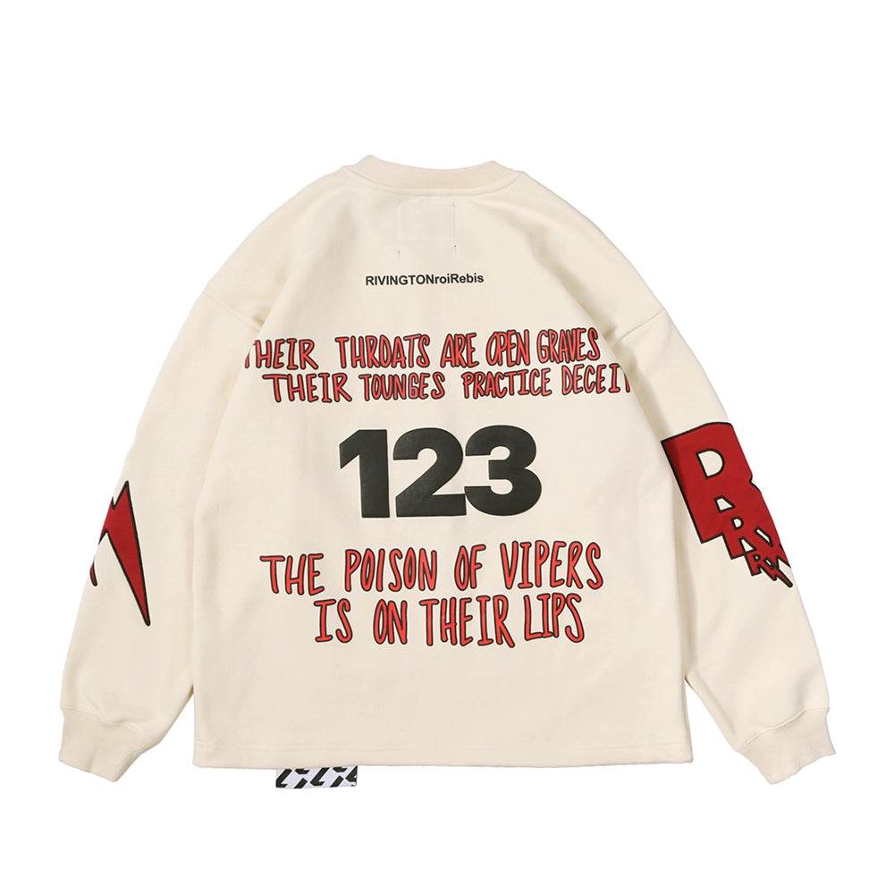 Men Fleece Lined Hoodie Print Sweaters Menswear Loose Pullover Top Ins American Style