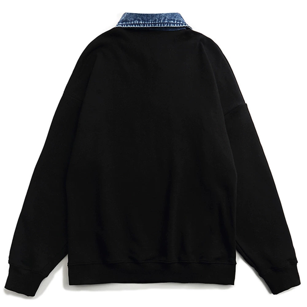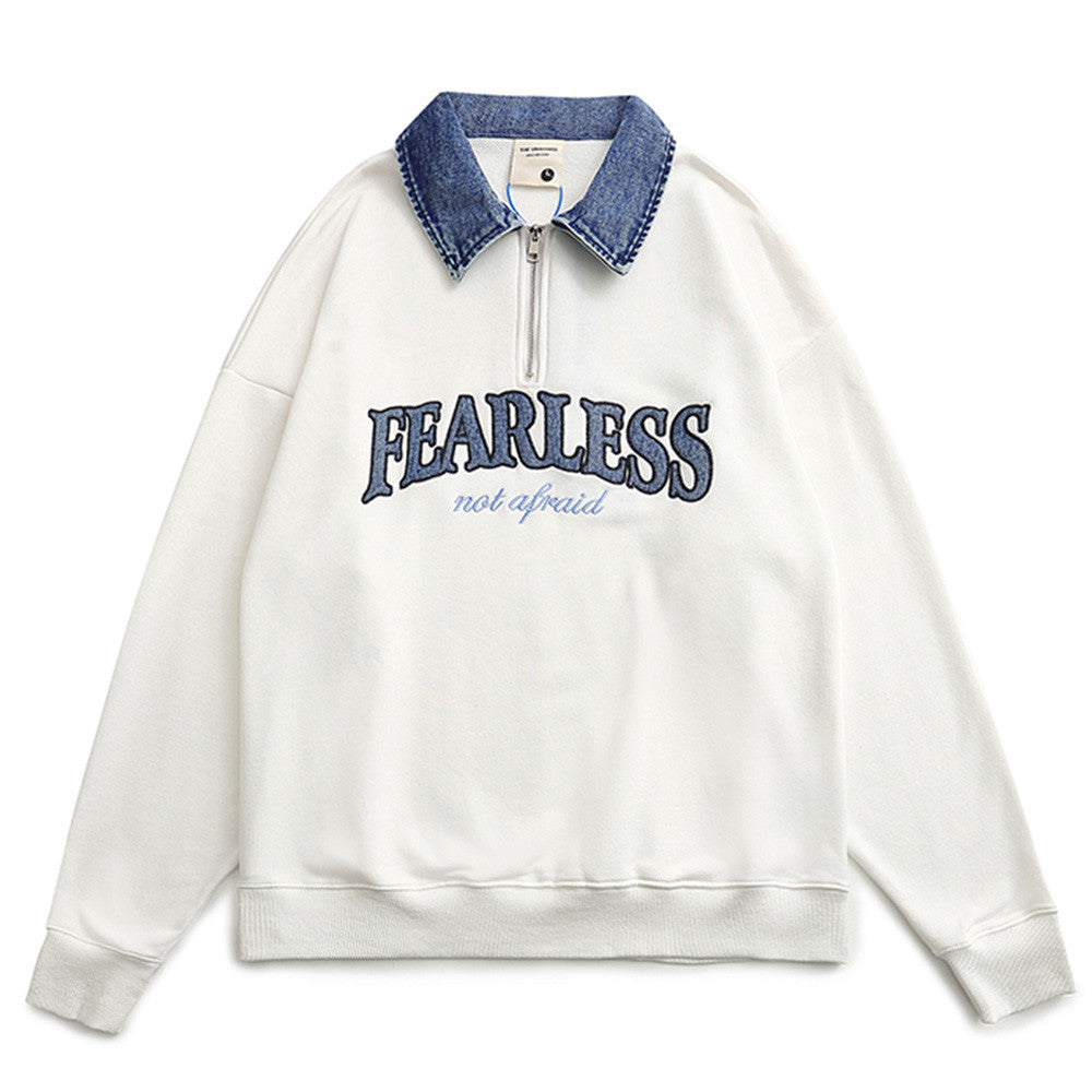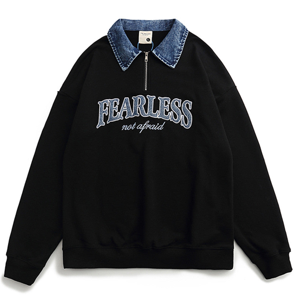 Men Fleece Lined Hoodie Multicolor Hoodie Men's Ins Loose Letter Embroidery Polo Top