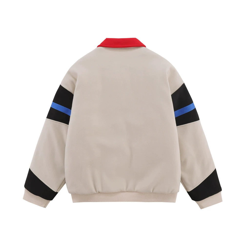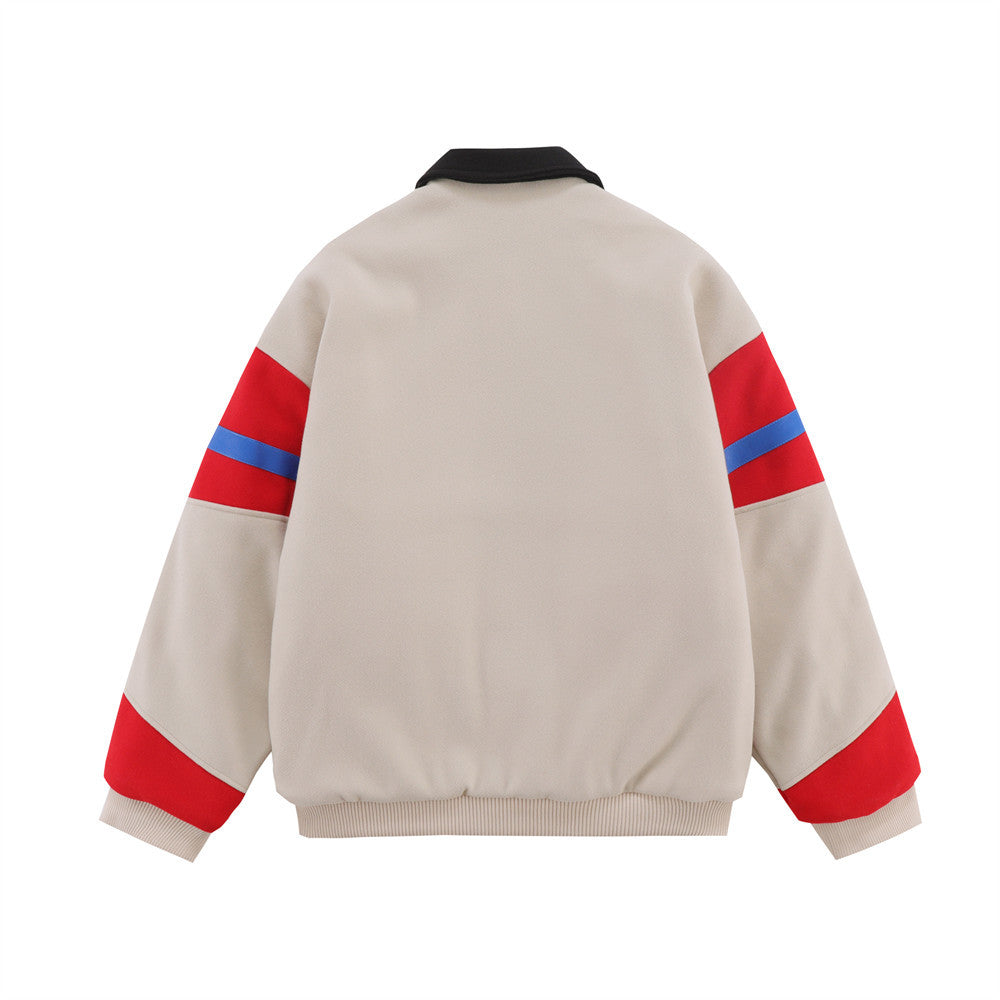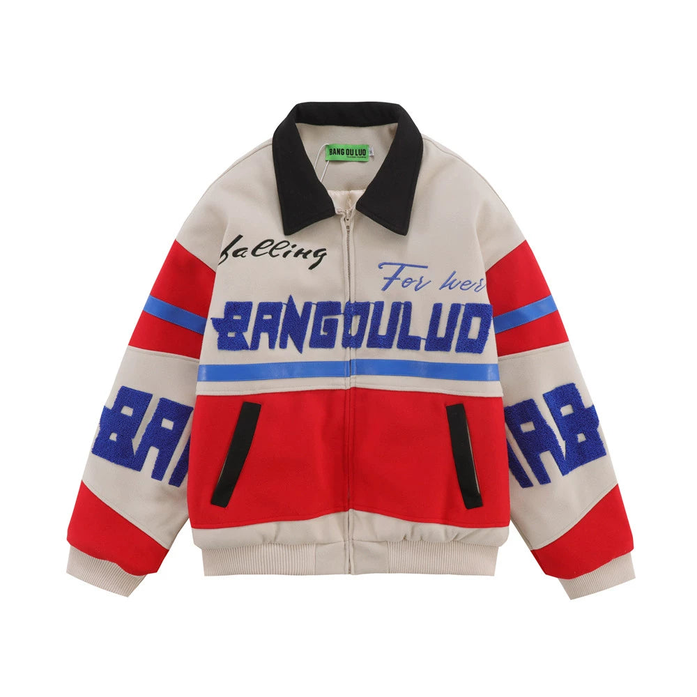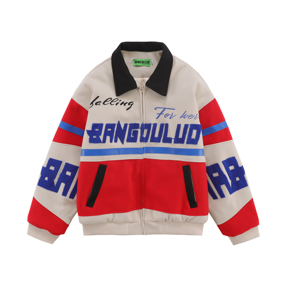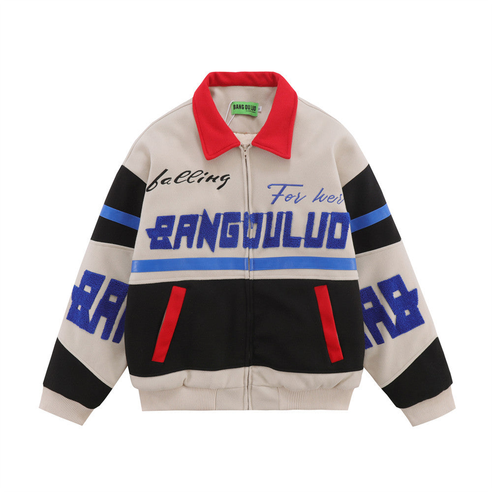 Men Cotton Mixed Jacket Coat Racing Suit Men's Winter Cotton Padded Stitching Embroidery Letters Polo Collar Jacket