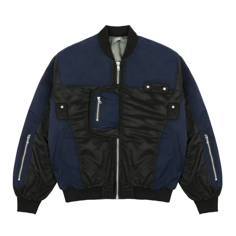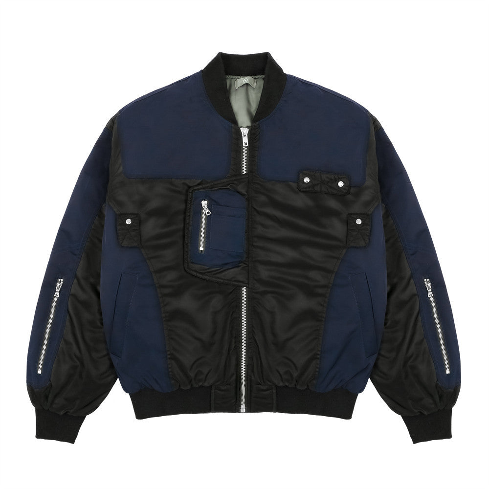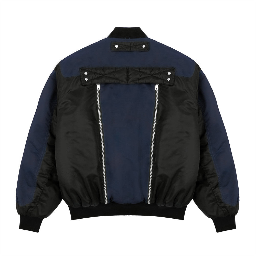 Men Cotton Loaded Jacket Coat Color Contrast Patchwork Jacket Coat Men's Loose Zip Motorcycle Cotton-Padded Jacket