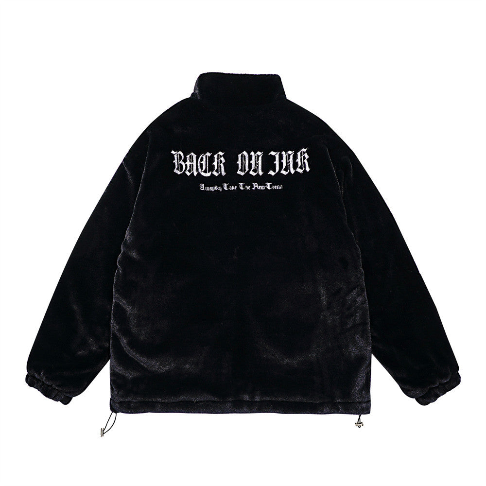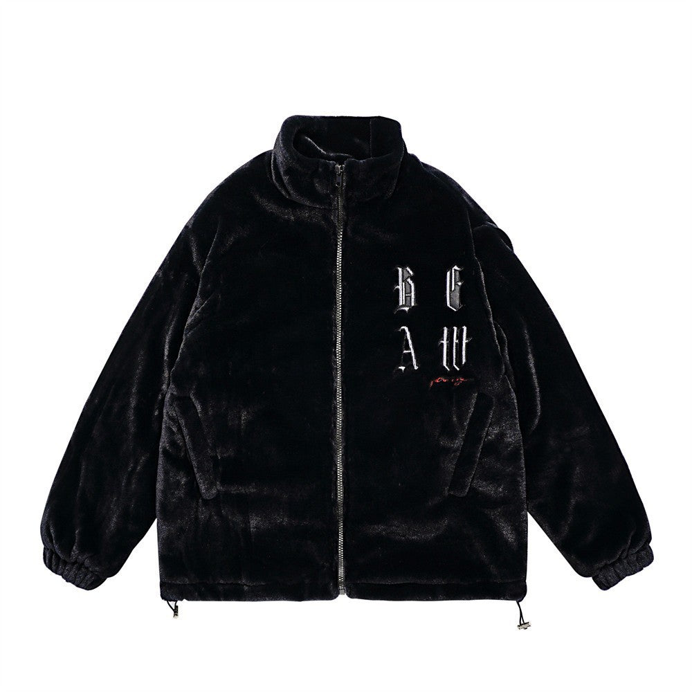 Men Cotton Padded Jacket Coat Letter Embroidered Cotton Jacket Men Winter Thickening Stand Collar Baggy Coat