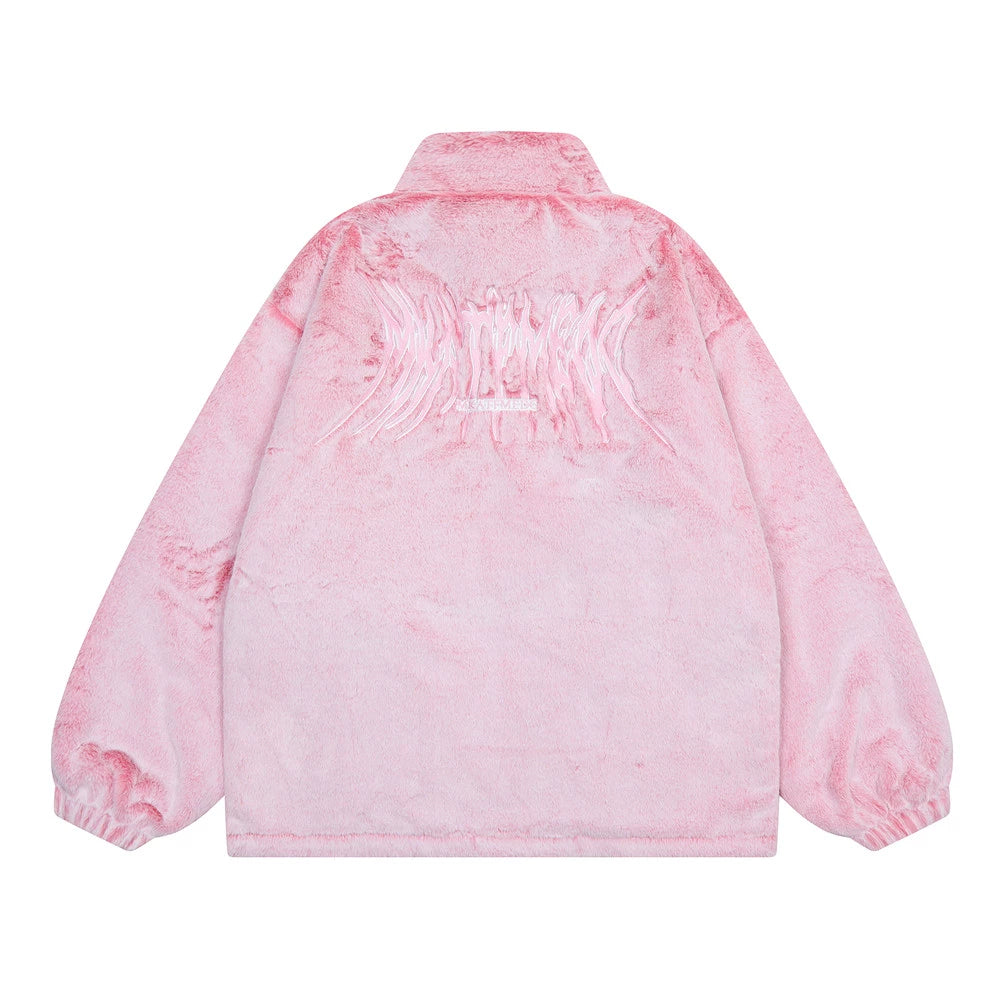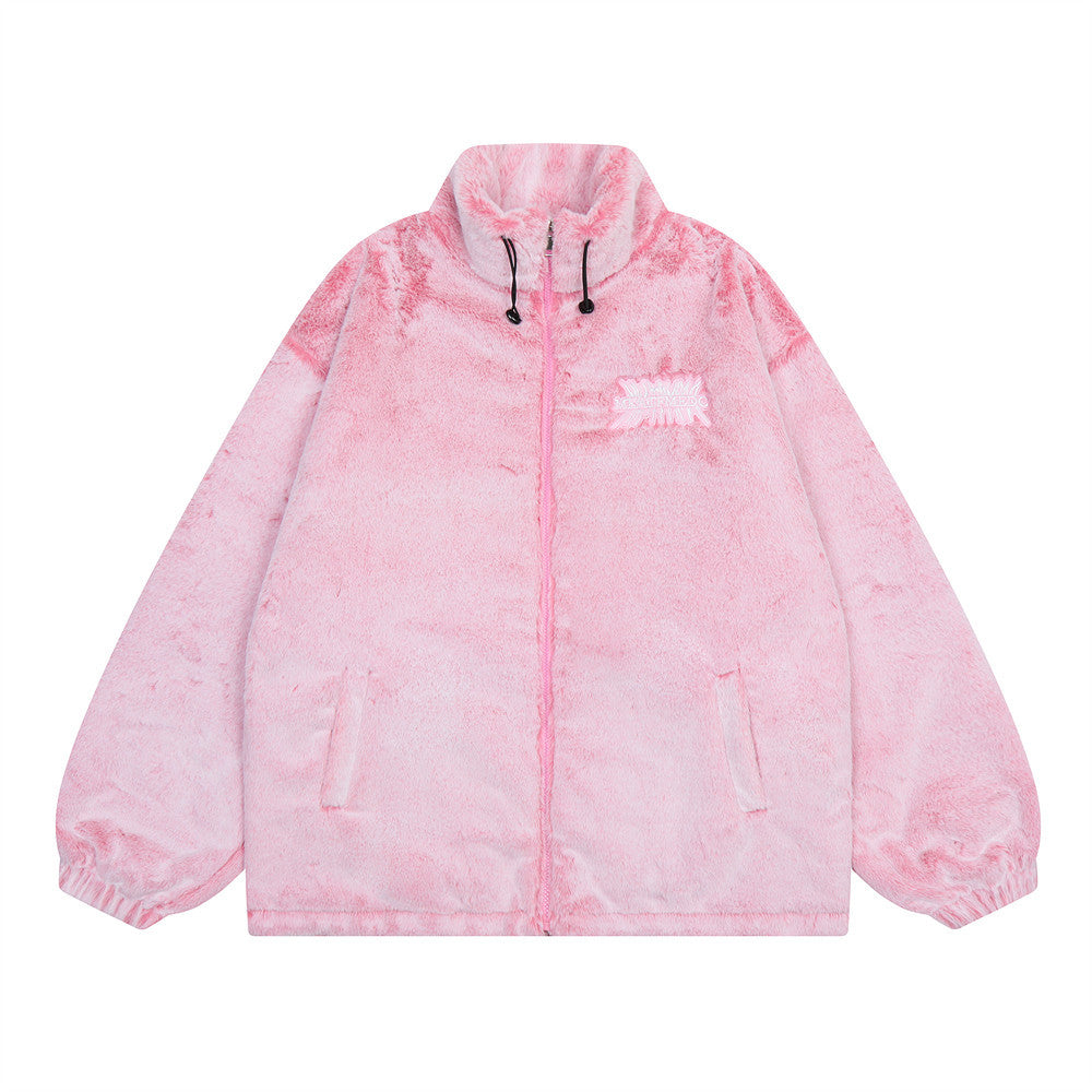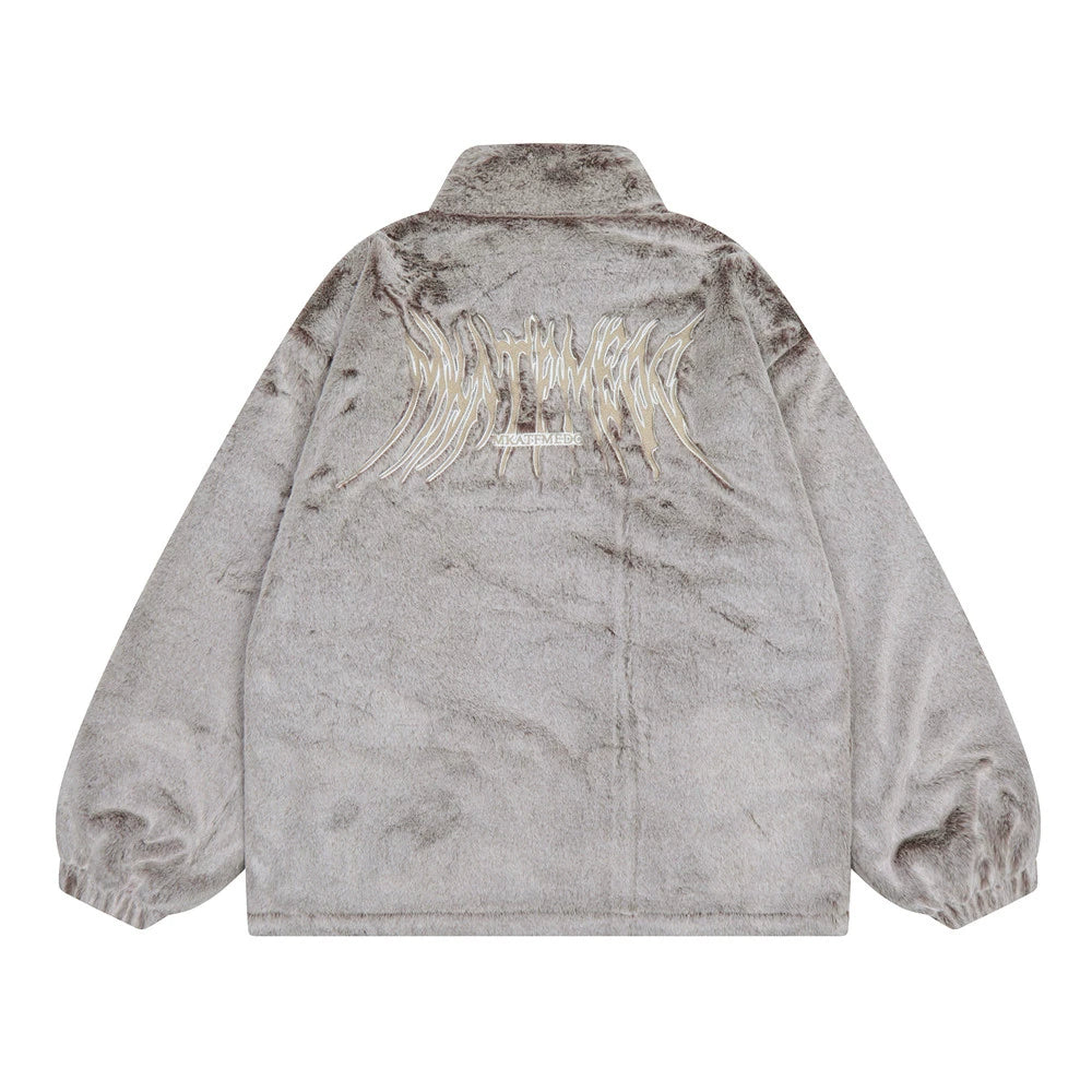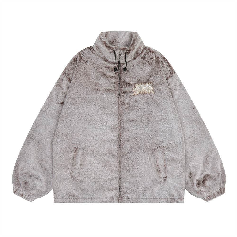 Men Cotton Mixed Jacket Coat Embroidered Lamb Coat Men's Winter Collar Drawstring Loose Cotton Coat Jacket