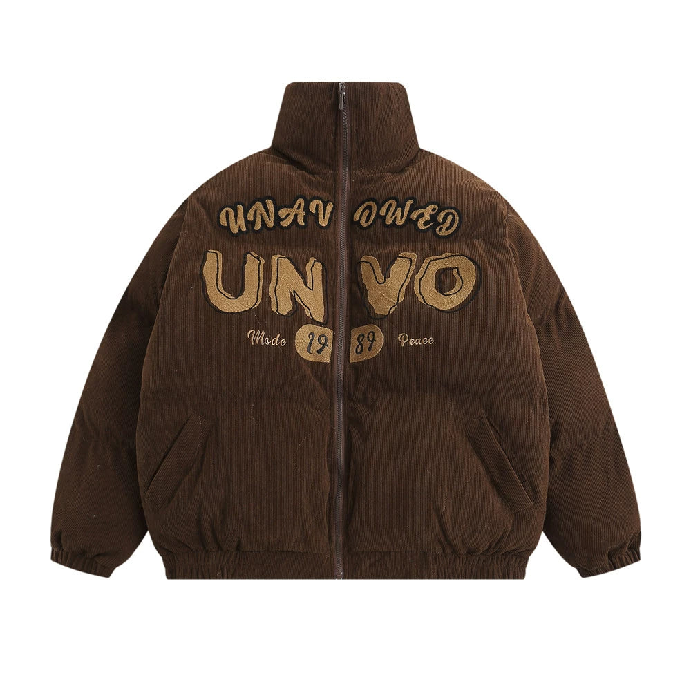 Men Cotton Padded Jacket Coat with Letters Embroidered Cotton Jacket Men's Winter Long Sleeve Cotton Coat Puffer Jacket Coat