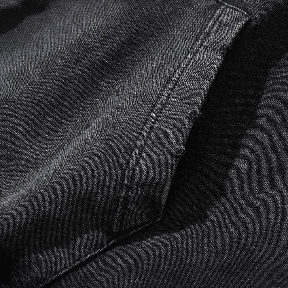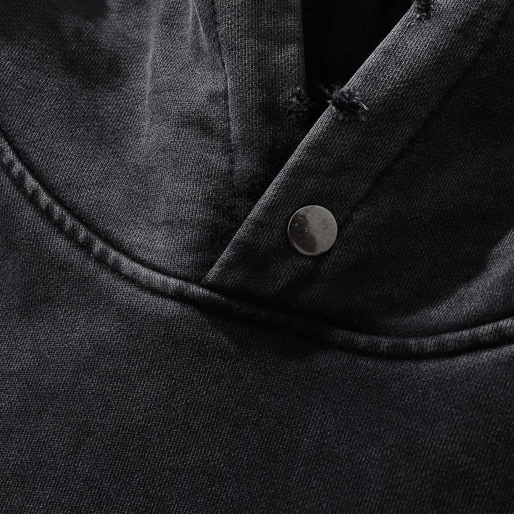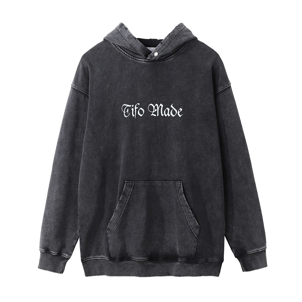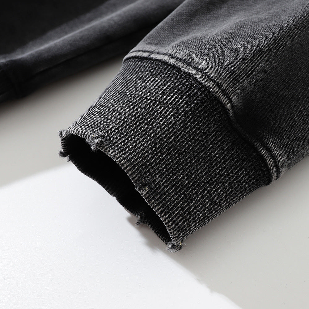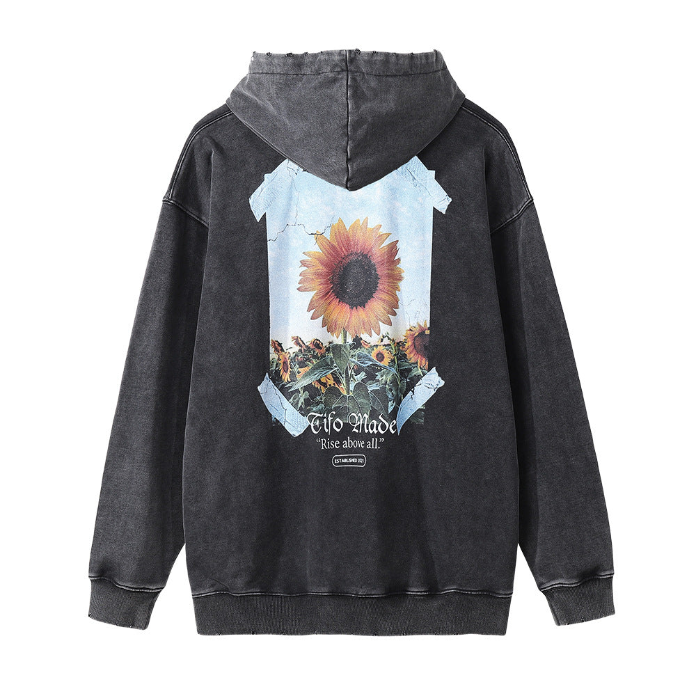 Men Hoodie Sunflower Flower Printed Hoodie Loose Washed-out Distressed Worn Hoodie