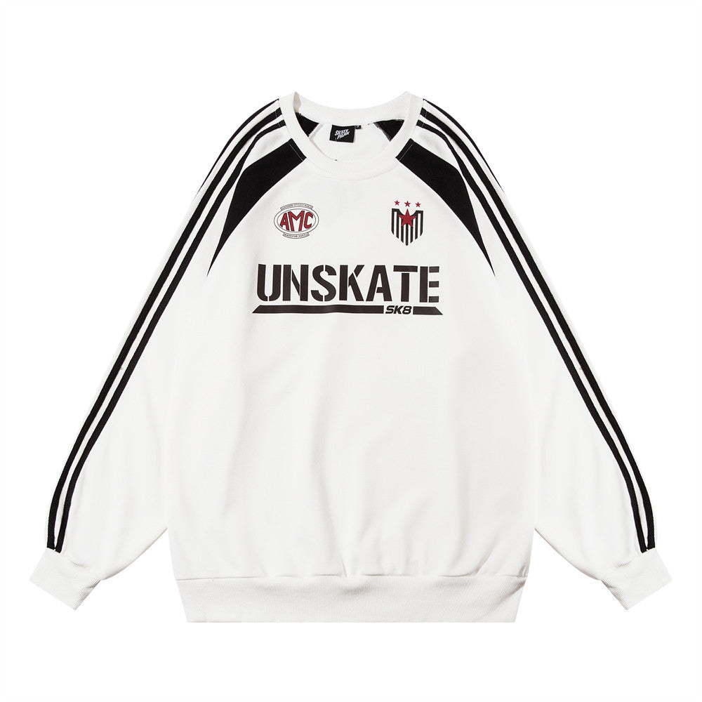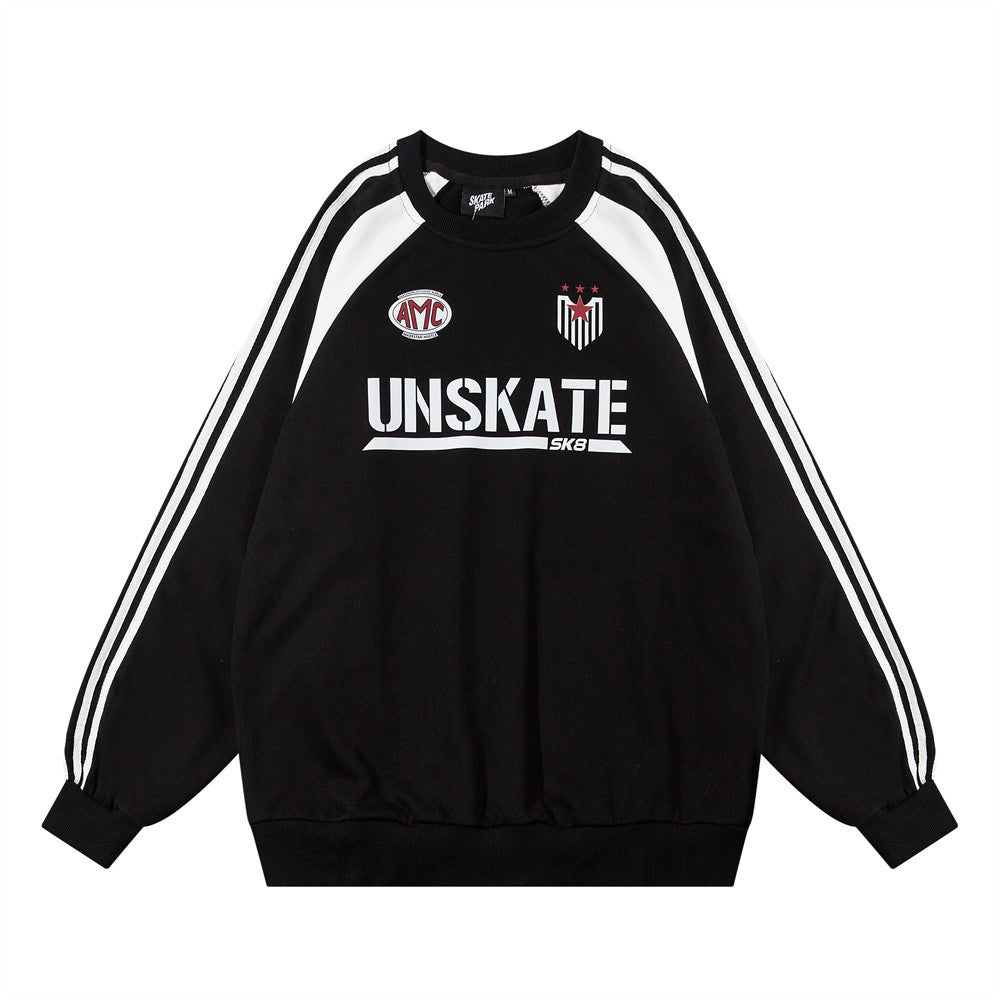 Men Hoodie Spring and Autumn Loose Sweater Men's Casual Raglan Sleeve Patchwork Stripes