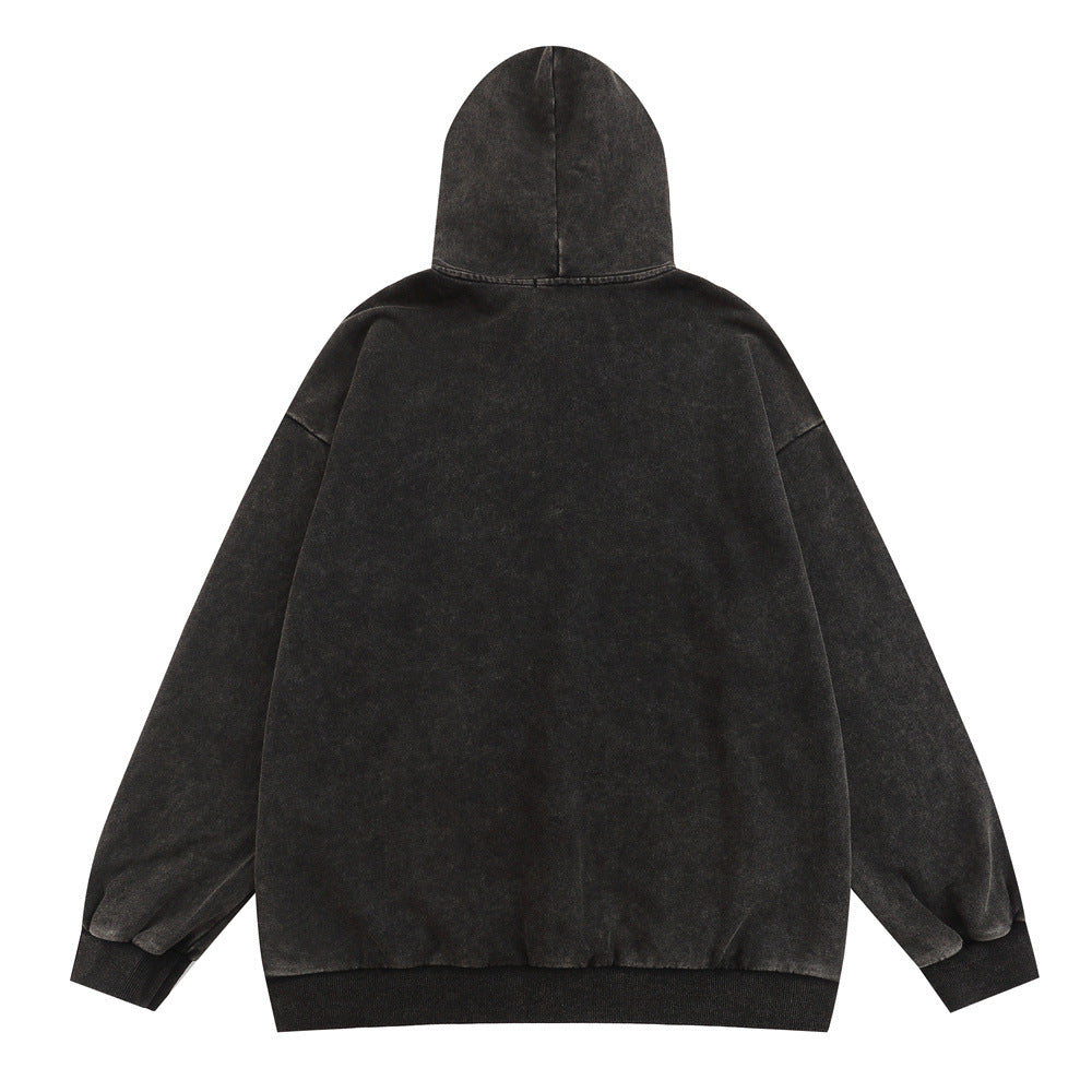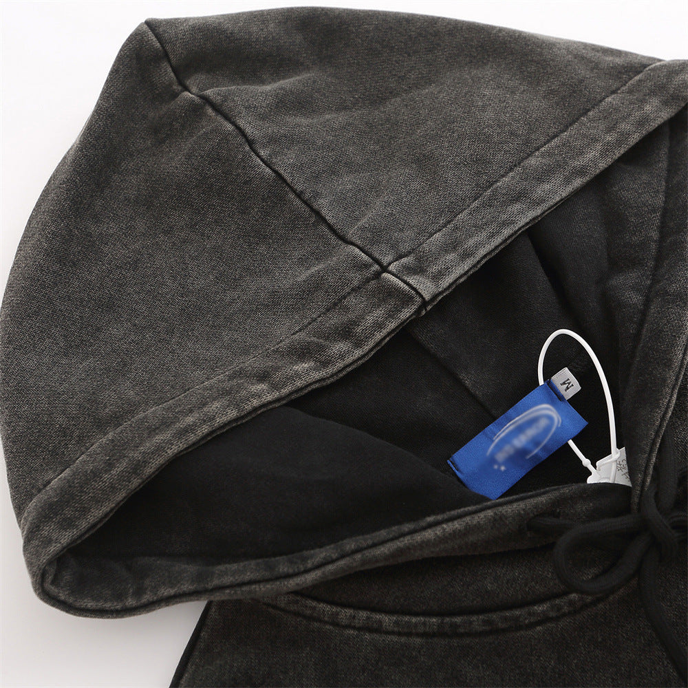 Men Hoodie Worn Looking Washed-out Hooded Pullover Men's Printed Loose