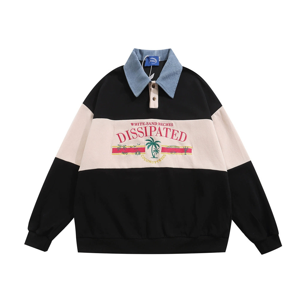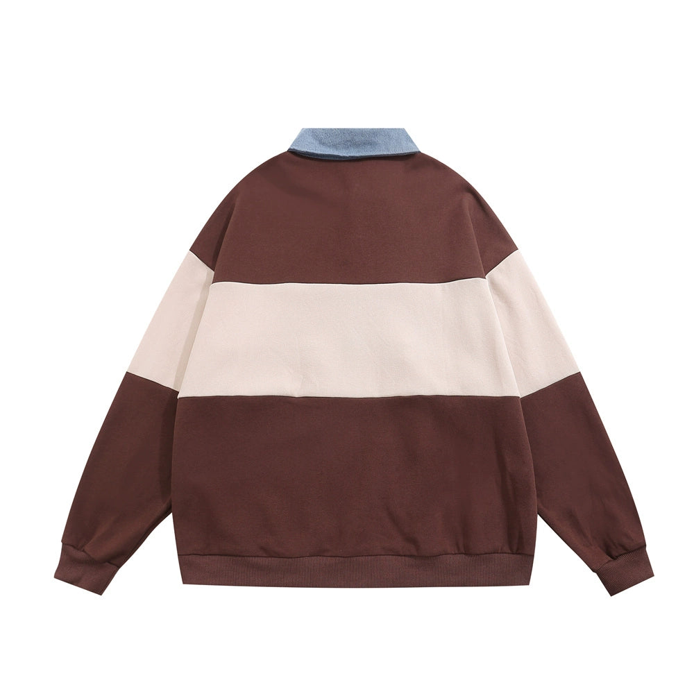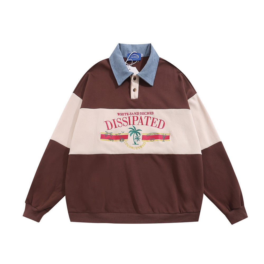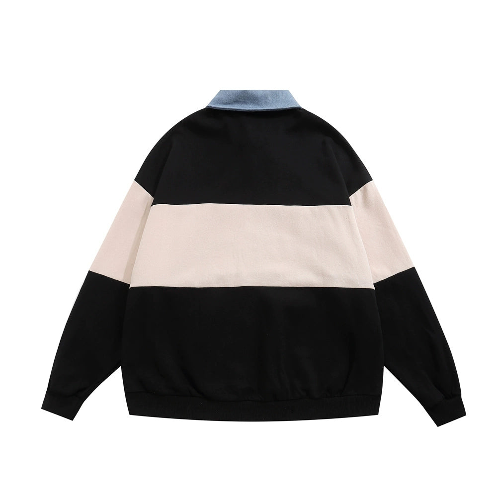 Men Hoodie Stitching Embroidered Letters Men's Loose Spring and Autumn Long Sleeve Polo Shirt