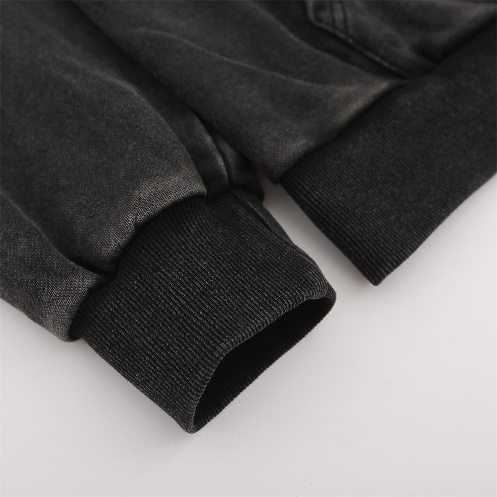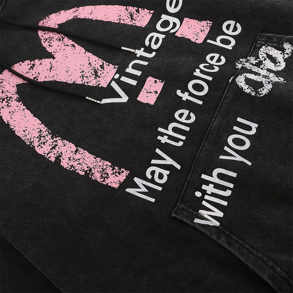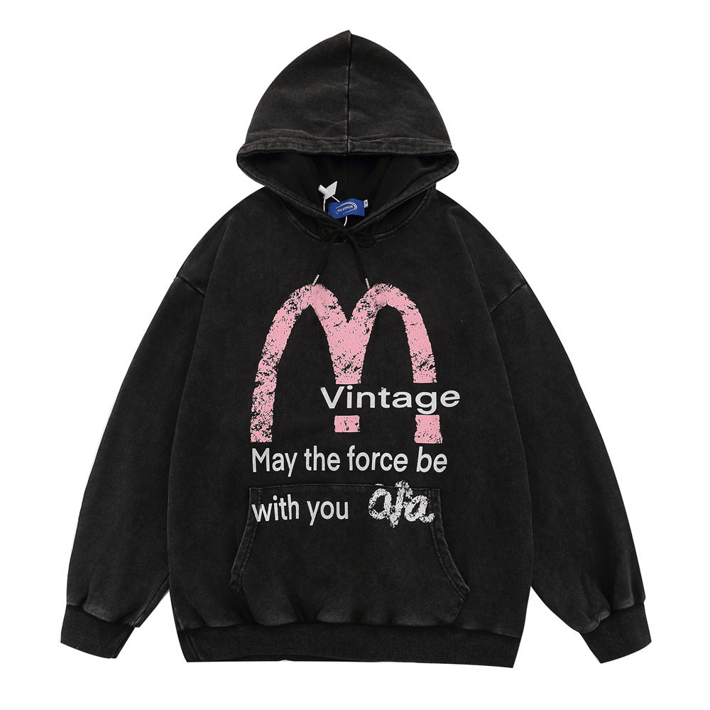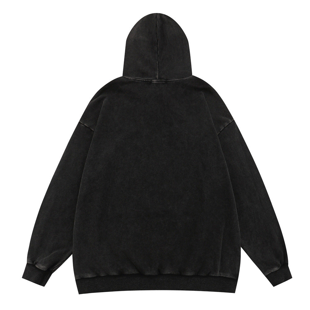 Men Hoodie Worn Looking Washed-out Letter Hooded Sweater Loose Spring and Autumn