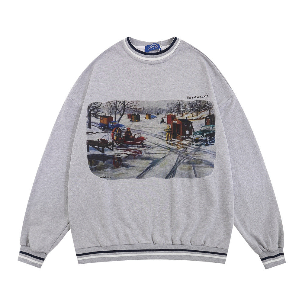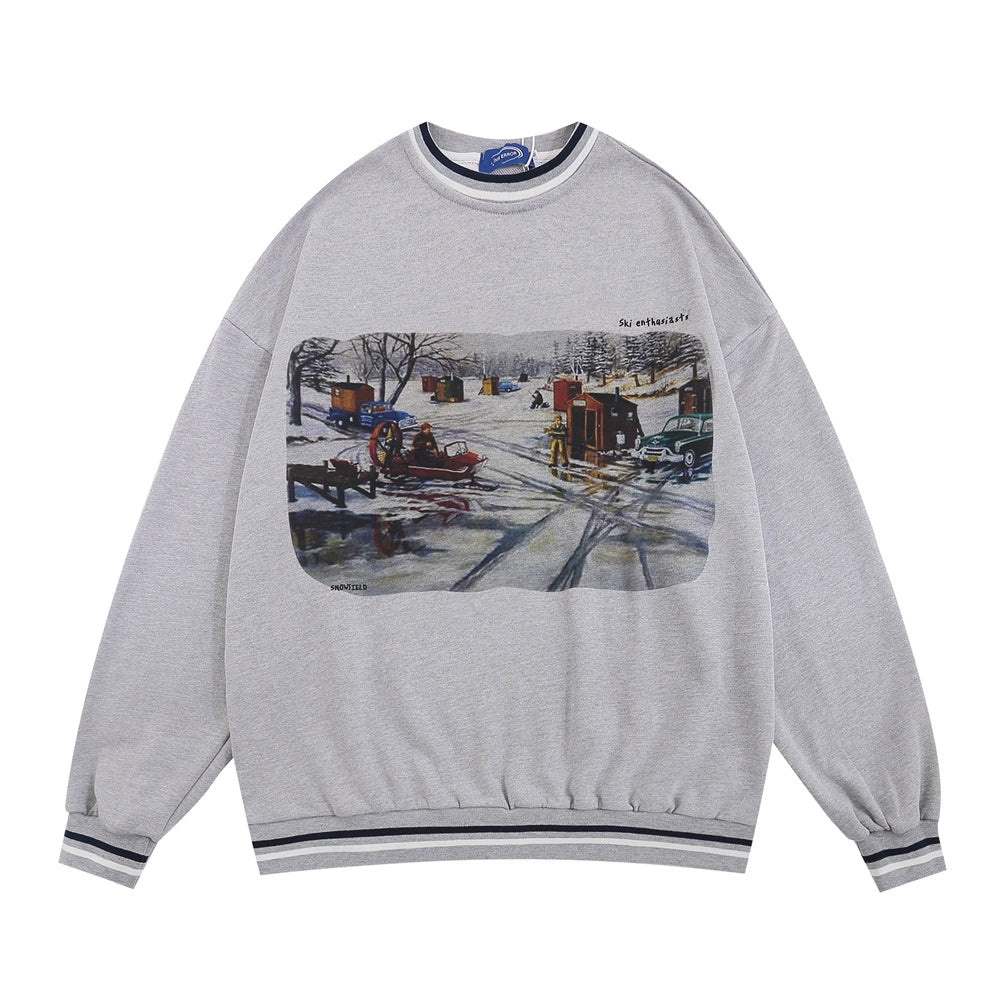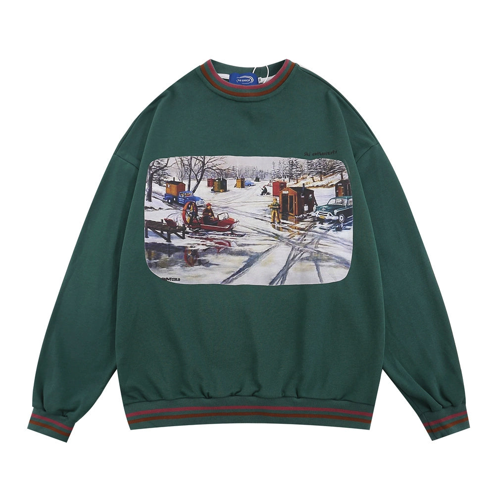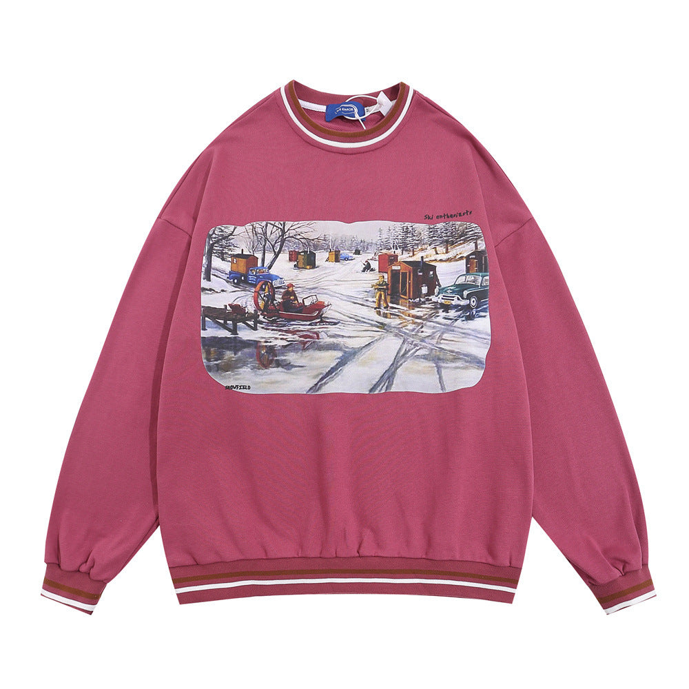 Men Hoodie Spring and Autumn Loose round Neck Sweater Men's Casual Long Sleeve Printed