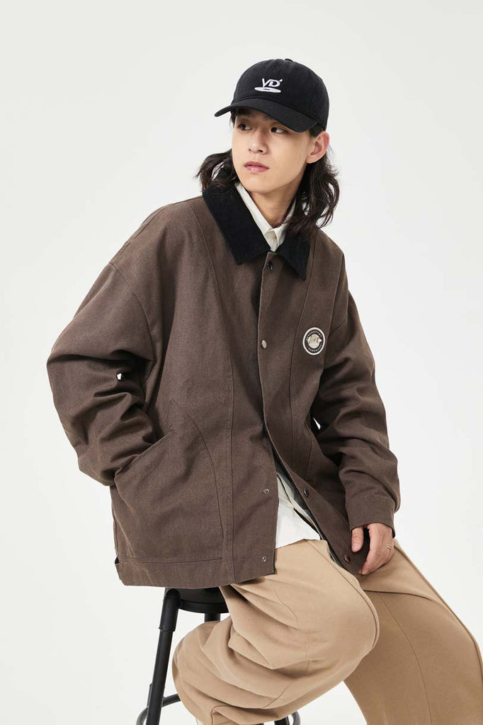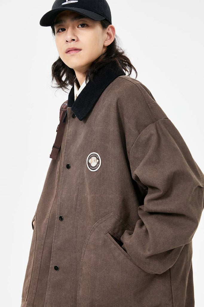 Unisex Jacket Autumn Contrast Color Canvas Coat Women's Clothing