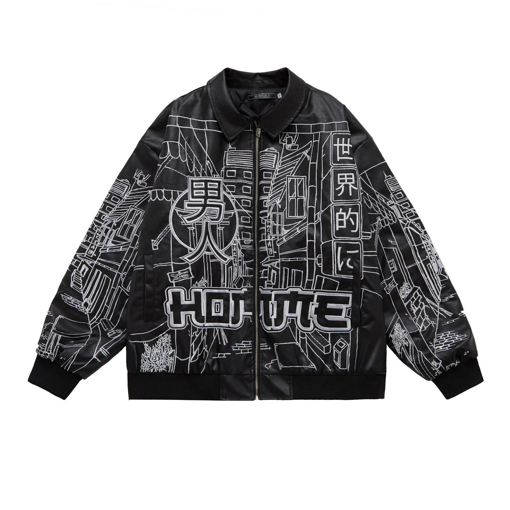 Graffiti Bomber Jacket Denim Jacket Men and Women Loose
