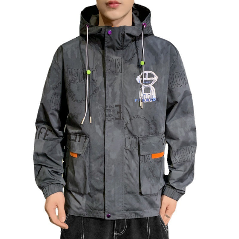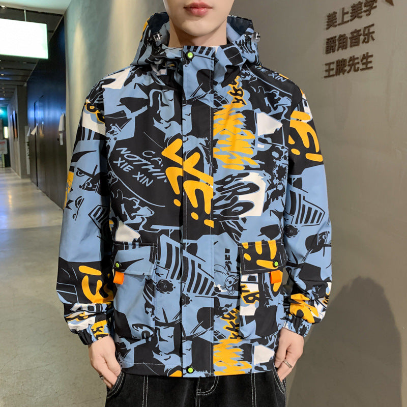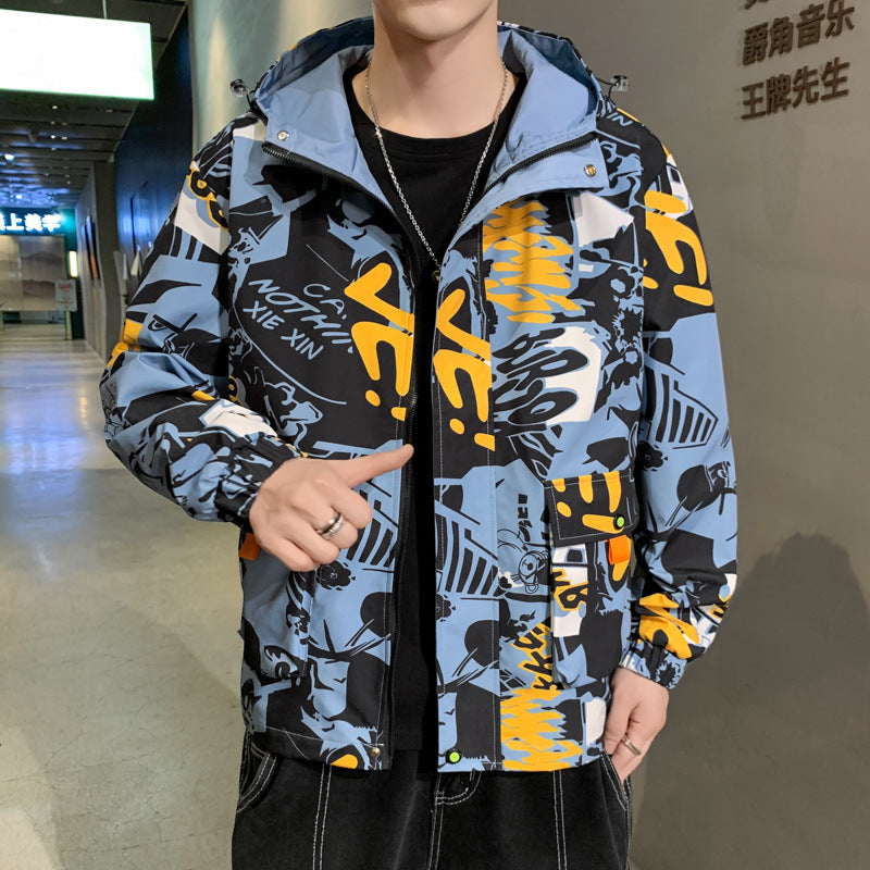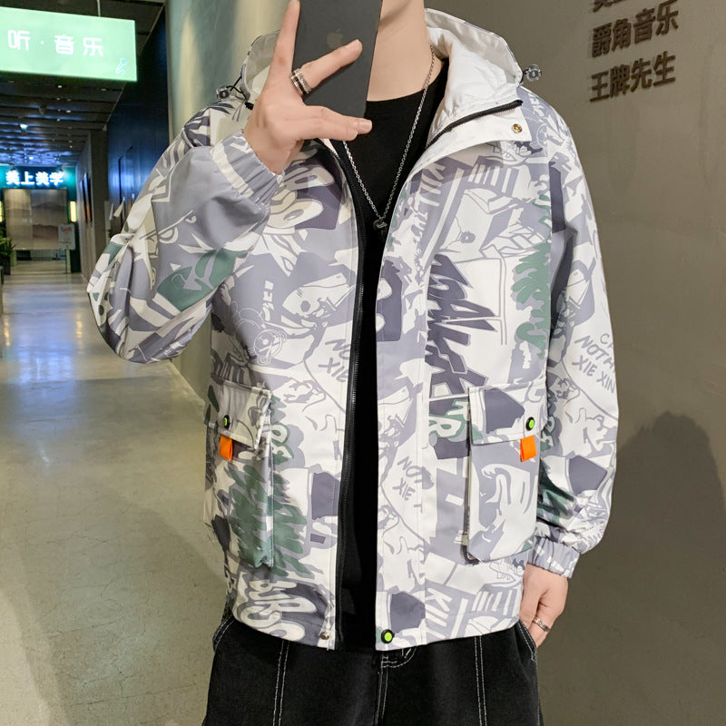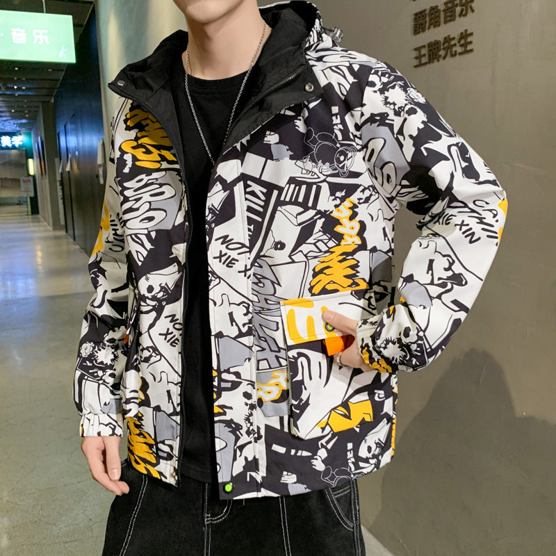 Graffiti Bomber Jacket Men's Spring and Autumn Hooded Jacket