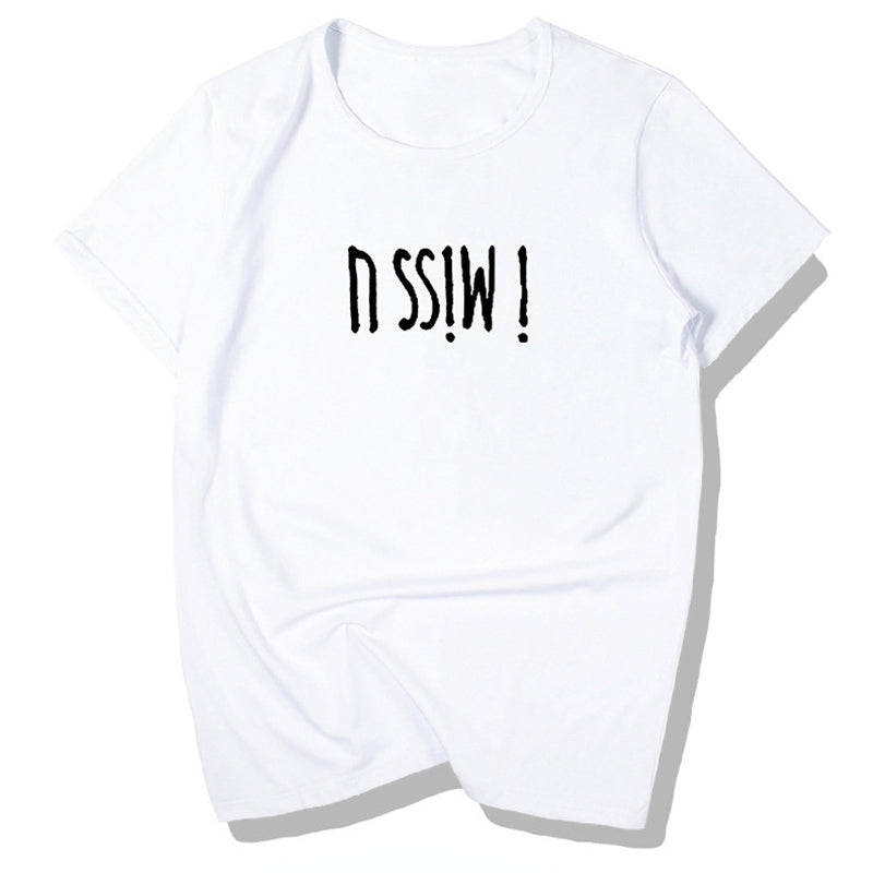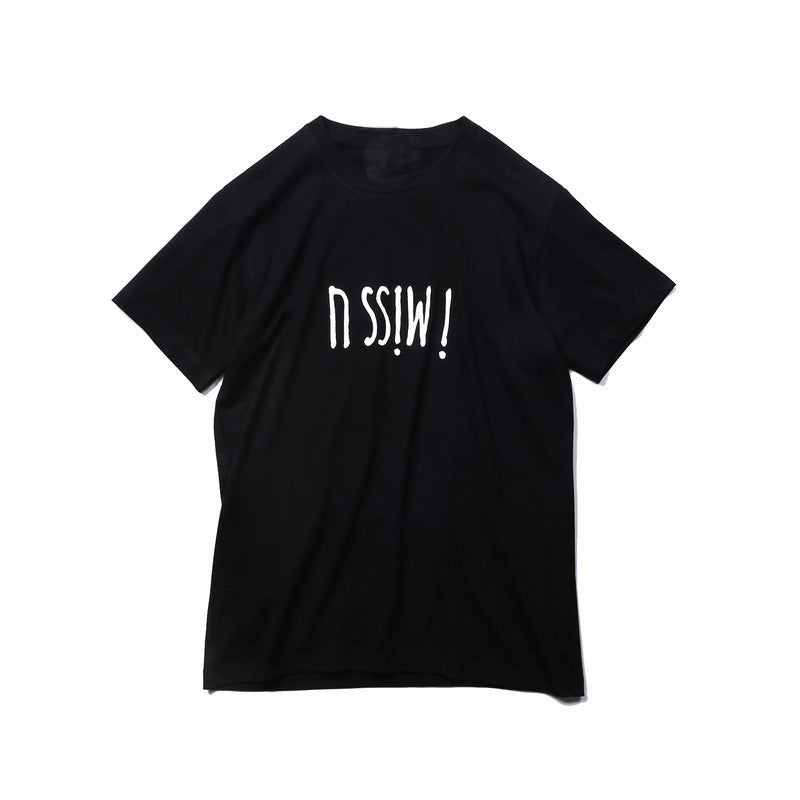 Madness I Miss U Tee Fashion Brand Short Sleeve T-shirt Men's Hong Kong Style Trendy Top Simple T-shirt Black and White Base Shirt