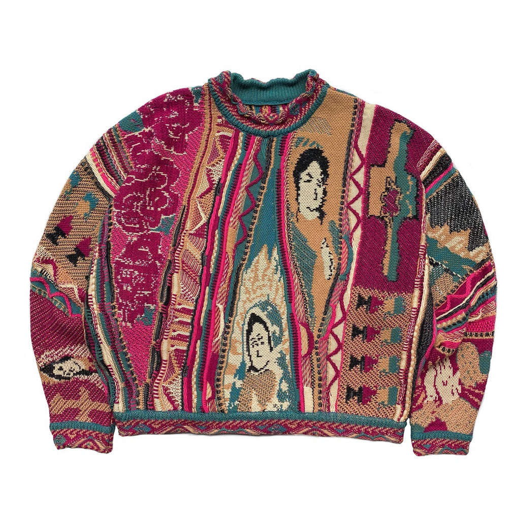 Kapital Sweater Vintage Hida Hehong Contrast Color Retro Ethnic Style Portrait Knitting Crew Neck Pullover Sweater