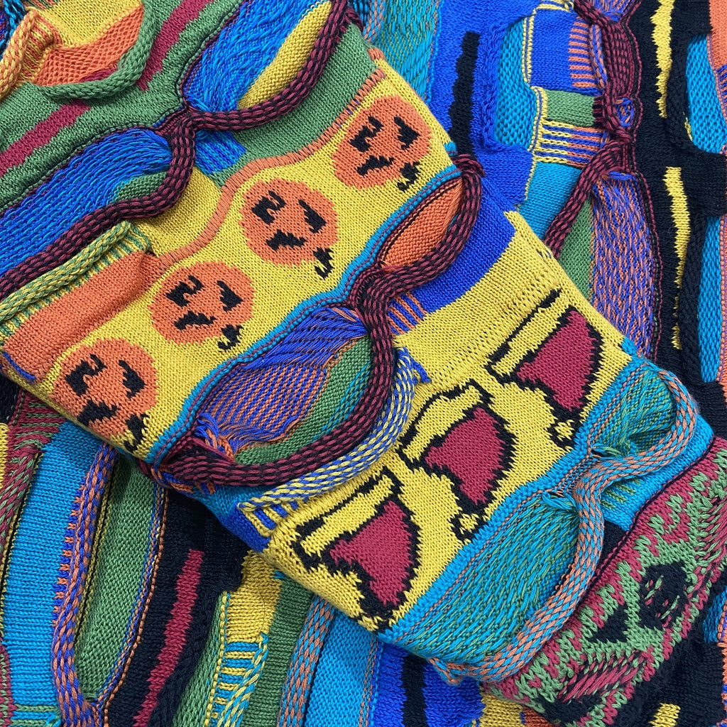 Kapital Sweater Vintage Hida Hehong Heavy Industry Pattern round Neck Retro Three-Dimensional Wave Contrast Color Sweater