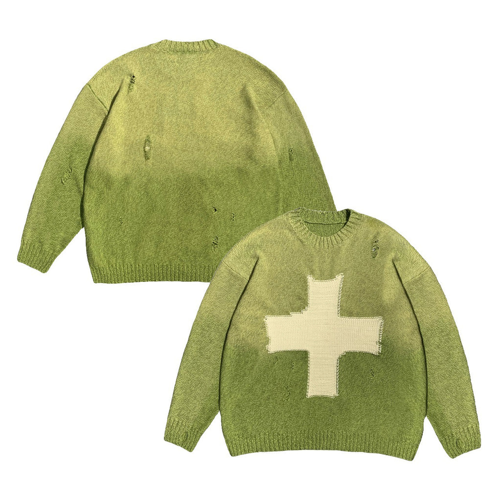 Kapital Sweater Vintage Hida and Macro Cross Ripped round Neck Knitted Pullover Long Sleeve Sweater